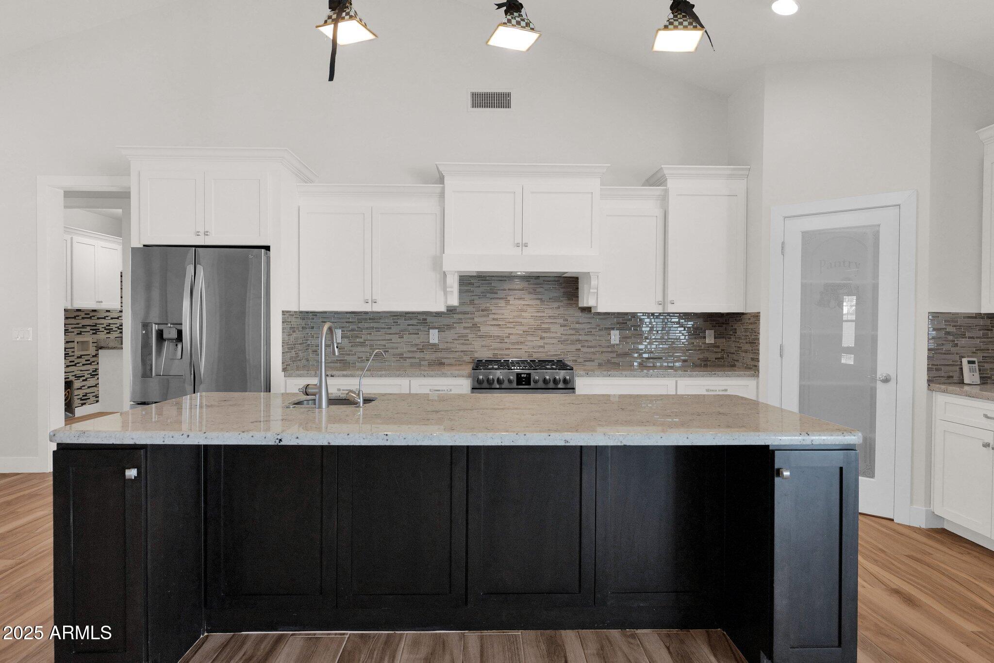 🍳 Modern kitchen with granite counters, stainless appliances & island