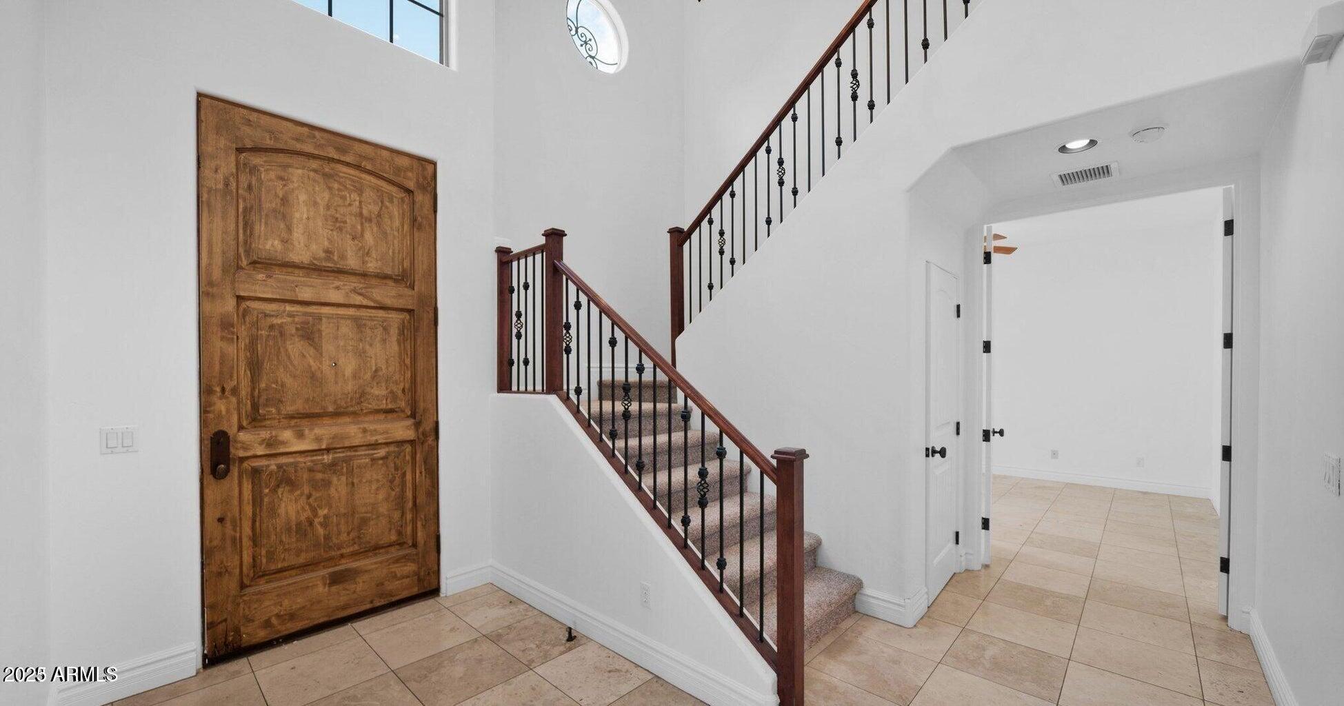 This townhome stands out with its gorgeous Cantera Stone exterior and private garages, offering both curb appeal and security. Step through the dramatic 9-foot entry door into a spectacular foyer with soaring ceilings over 20 feet high—an impressive welcome that sets the tone for the rest of the home.