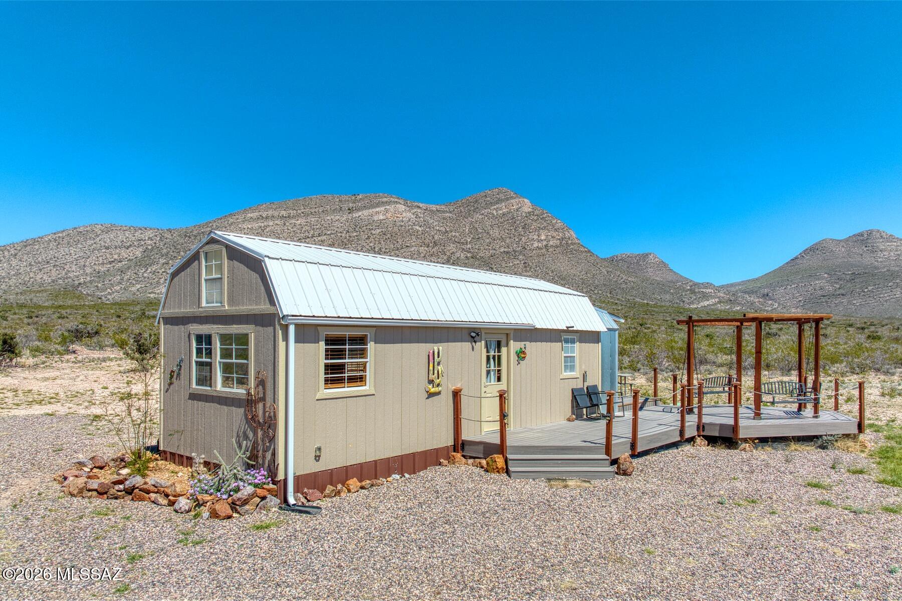 Escape to wide-open space with this charming tiny home on 9.415 acres in scenic Bisbee! Offering 384 sq ft of main living plus a 120 sq ft sleeping loft, and add'l storage loft space. This thoughtfully designed home features warm wood finishes, corrugated metal accents, and a functional full kitchen with electric cooktop, double sink, microwave, and built-in natural wood dining bar. The bathroom includes a shower, single vanity, storage and stacked washer/dryer. Operated as a successful short-term rental ''Stargazer,'' this turnkey property with panoramic views even includes furnishings. Features private well, pump house, AC, updated electric service, grill area and a big deck swing. Ideal for full-time living or wknd escape, minutes from Old Bisbee, Sierra Vista, dining and necessities!