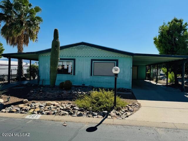Welcome to this charming 3-bedroom, 2-bath home in the desirable Pueblo Estates community. The spacious living room flows seamlessly into the dining area, creating an inviting space for gatherings. The enclosed sunroom is perfect for relaxing year-round, and the covered carport offers convenient parking. The primary suite features a private bath for added privacy and comfort. Additional highlights include a separate storage area for all your needs. Enjoy community amenities such as a recreation center, heated pool/spa, library, billiard room, and shuffleboard. Close to shopping, restaurants, golf, and medical facilities, this home offers the perfect combination of convenience and comfort. Don't miss out! **Buyer and Buyer's Broker to verify any items that are of material issue.**