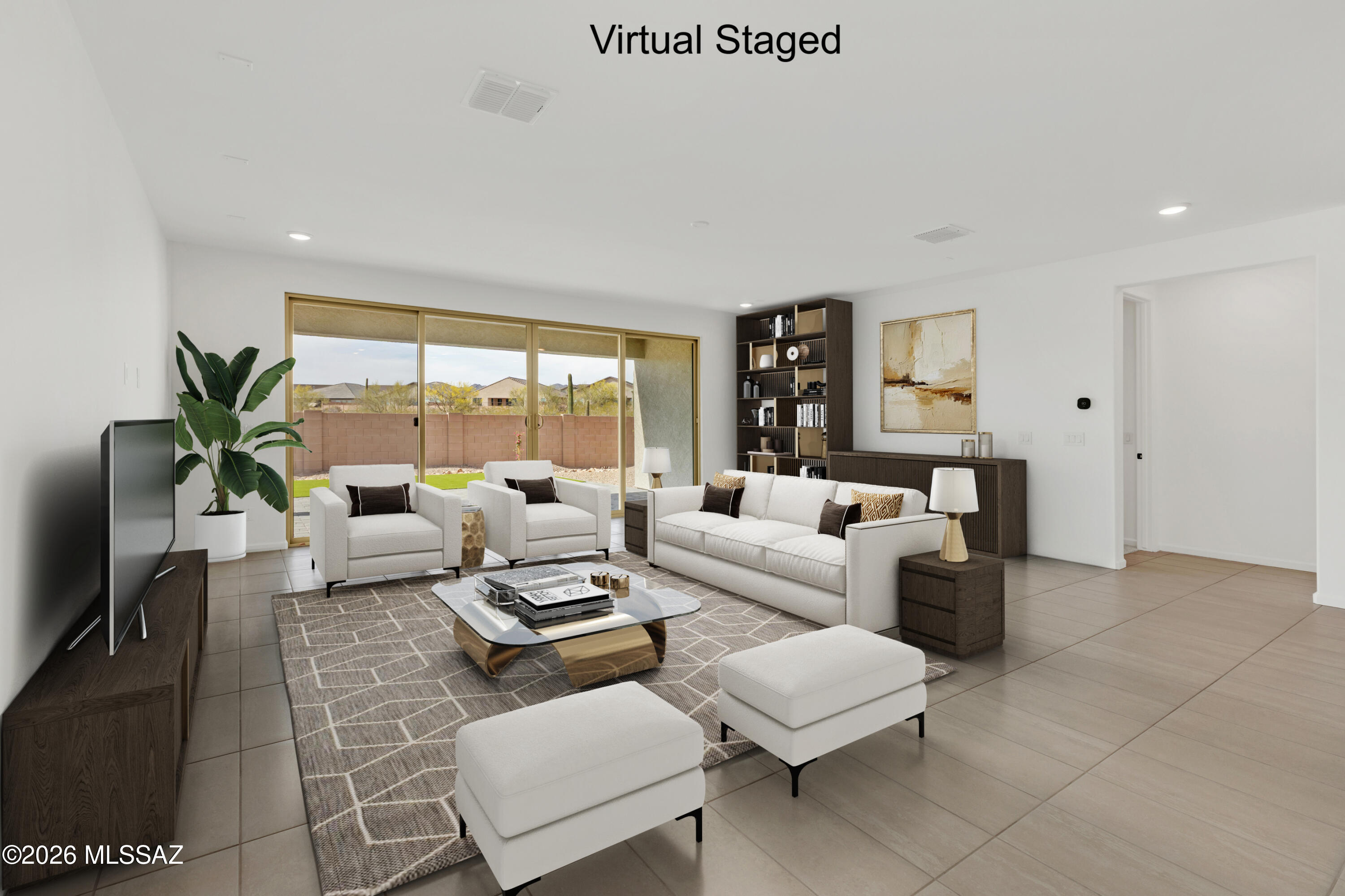 Blush plan with Ranch elevation. Beautiful home features open Greatroom plan with spacious kitchen, dining area & Den. The Owner's suite is a retreat with a generously sized walk-in closet, a beautifully tiled walk-in shower, and a vanity with twin sink. Convenient Stop-n-Drop area adds organization & a place to charge your devices. Kitchen is equipped with a gas range, microwave oven, refrigerator, center island and a walk-in pantry for all your culinary needs. Laundry room is complete with Washer/Dryer. Includes faux wood blinds, 8' interior doors, Tankless water heater and more!