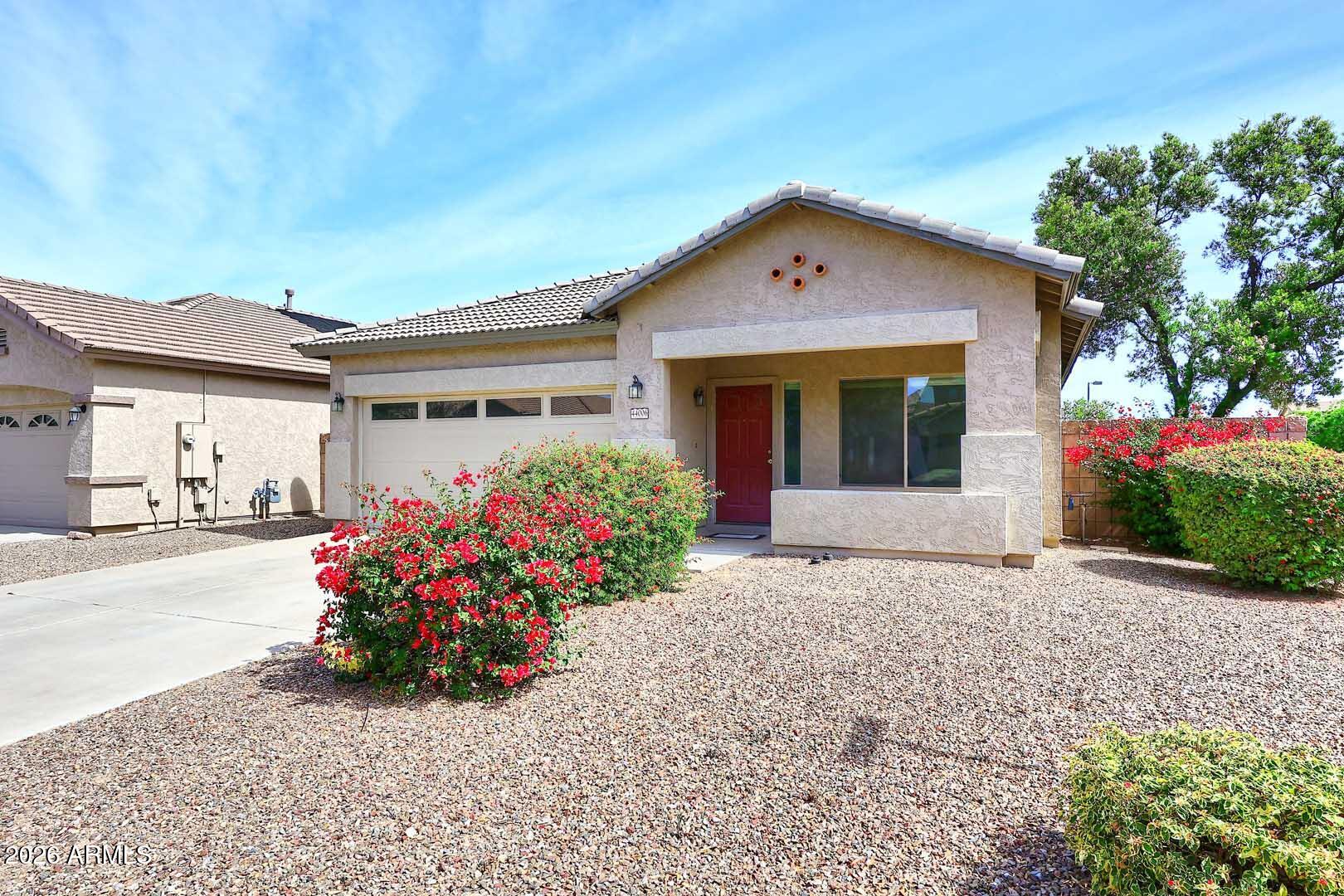 NEW, NEW, NEW...flooring, appliances, fresh interior paint (4/26). This single story, premium corner lot, one of Fulton Homes' most popular floorplans boasts 4 beds/2 baths, spacious open kitchen/great room with formal living/dining space. Primary bedroom features bay window overlooking backyard, en-suite bath w/walk-in shower & closet. Ceiling fans, sun screens add to the energy efficiency of this N/S facing home. 2-car garage w/epoxy flooring, utility sink, insulated garage door, direct entry to laundry & washer/dryer included. Low maintenance landscaping is an added bonus. One of Cobblestone's finest...welcome home!
