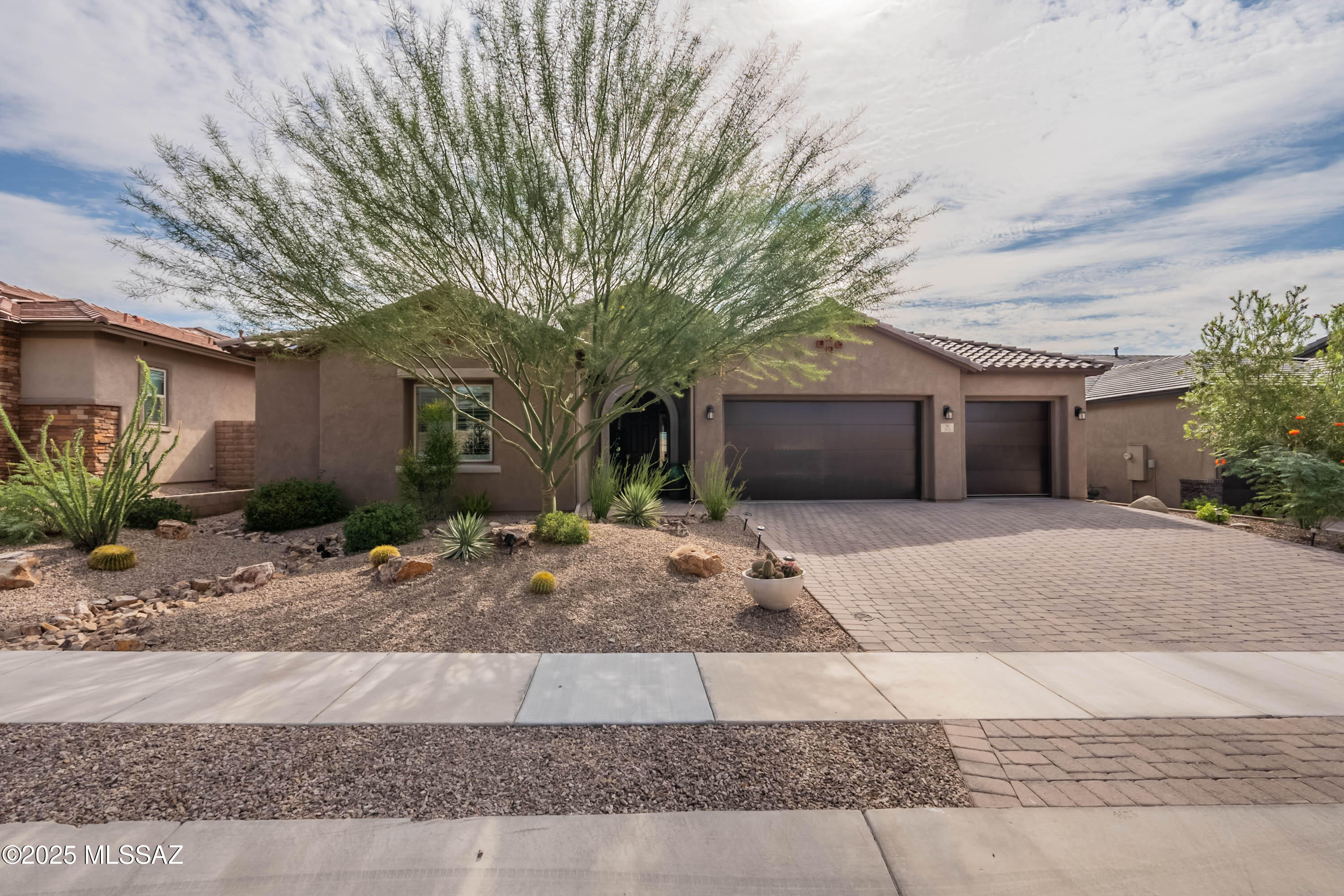 STUNNING ORO VALLEY home. Welcome to your dream home nestled in a private gated community in the heart of Oro Valley. This well-designed home offers breathtaking panoramic views of the Catalinas from both the Patio & Owner's suite. 3 Bedrooms/2.5 baths/2.5 car garage. Spacious split floorplan w/luxurious owner's suite 2 huge closets, plantation shutters, spa like bath w/soaking tub & separate shower. 2 additional bedrooms with Jack&Jill bath. Elegant upgrades: butler's pantry with wine Frig, wet bar, whole-house water softener, custom garage cabs, epoxied floor & brick pavers driveway. Professionally designed yard w/covered patio, travertine pavers, gas fire pit, low maintenance plants & artificial turf. Prime location: access to highly ranked Basis School, OV Comm. Ctr