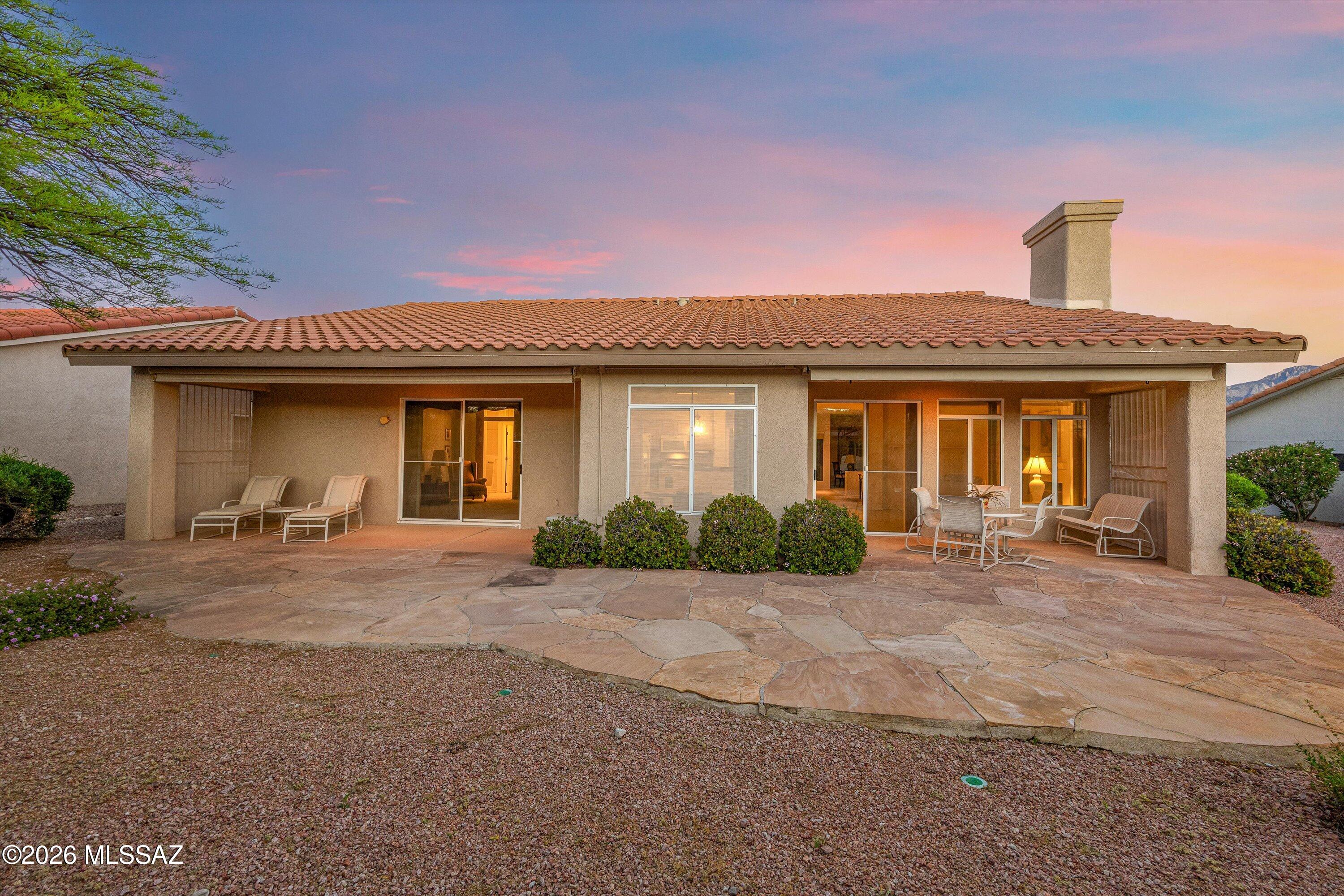 This one-owner home in the heart of Sun City Oro Valley has been wonderfully maintained! This 2-bed, 2-bath property features an expanded guest bedroom, along with dual back covered patios. Roof underlayment completely replaced in 2023. The primary suite has a walk-in tub, large walk-in closet with built-in shelving, and a sliding door for private access to the second covered patio. The off-kitchen family room has a gas fireplace, and the kitchen has been updated with quartz countertops. The two-bay garage has built-in storage cabinets and an epoxy floor coating. Spend time golfing with friends and relaxing by the pool at this 55+ community with outstanding amenities and incredible mountain views.