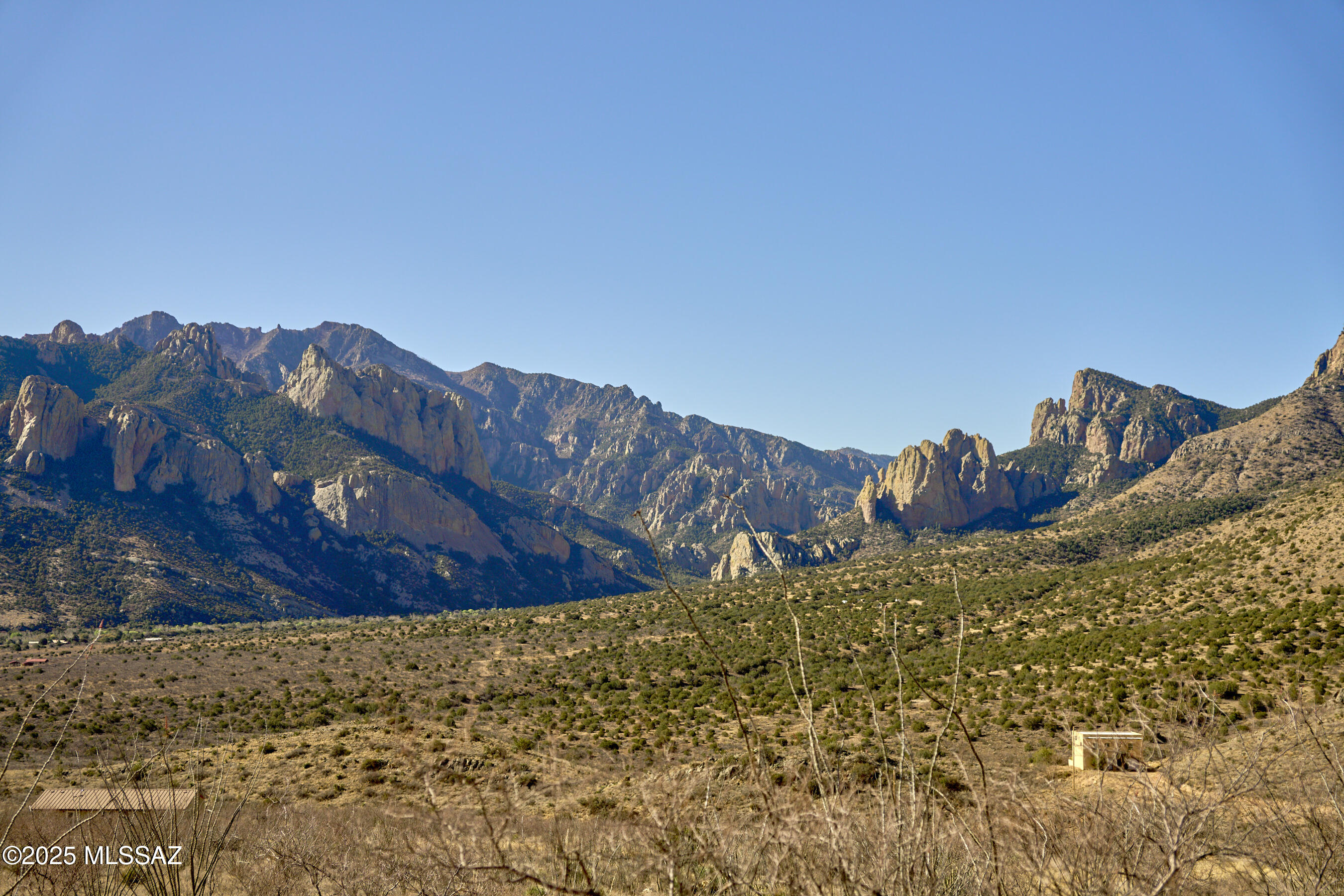 High mountainside lot, breathtaking views of the Chiricahua Mountain range and dark skies, great building sites. Natural desert vegetation with ocotillo, rich birdlife. Power at lot line and a well share. Portal area is a world-class birding, research, and outdoor recreation area, Bortle 1 & 2 Night Skies. Minutes from Portal Cafe and Cave Creek Visitor Info Center. Major shopping in Douglas 60 mi, UPS, FedEx, Home Depot & Lowe's deliver. Lot adjoins state land on the north. Deed restrictions, no HOA.