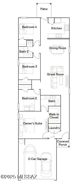 This new single-story home features a modern layout that is host to an open-concept floorplan consisting of the kitchen, dining room and Great Room. Four bedrooms are tucked away to the side of the home offering enhanced privacy, including the luxurious owner's suite with an en-suite bathroom and walk-in closet. A two-bay garage completes the home. Our homes come with Quartz Countertops, Frigidaire Stainless Steel Appliances, Rinnai Tankless Water Heaters, Post-Tension Foundation, Taexx built-in pest control system, Radiant barrier roof decking, 2'' Faux Wood Blinds and more!