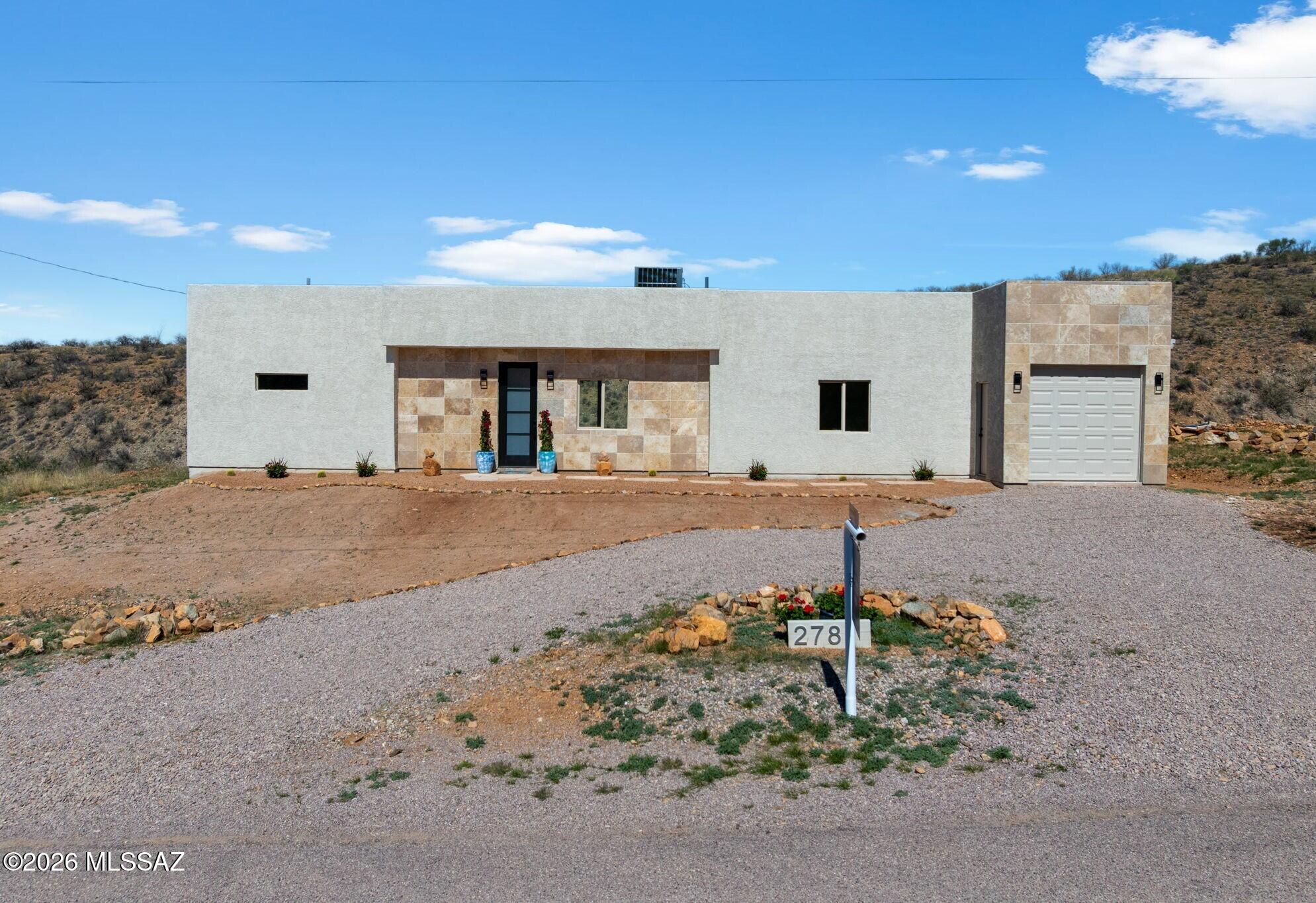 Just completed and move-in ready!! This stunning new construction home in Rio Rico, AZ offers modern design, thoughtful finishes, and breathtaking mountain views. From the moment you arrive, the home makes a statement with a striking front elevation featuring custom tile accents, creating strong curb appeal and a distinctive modern Southwestern aesthetic.Inside, the open-concept layout is filled with natural light and anchored by 24x12 porcelain tile throughout, delivering a sleek, cohesive look that's both durable and elegant. 8-foot interior doors enhance the sense of space and elevate the architectural feel throughout the home.