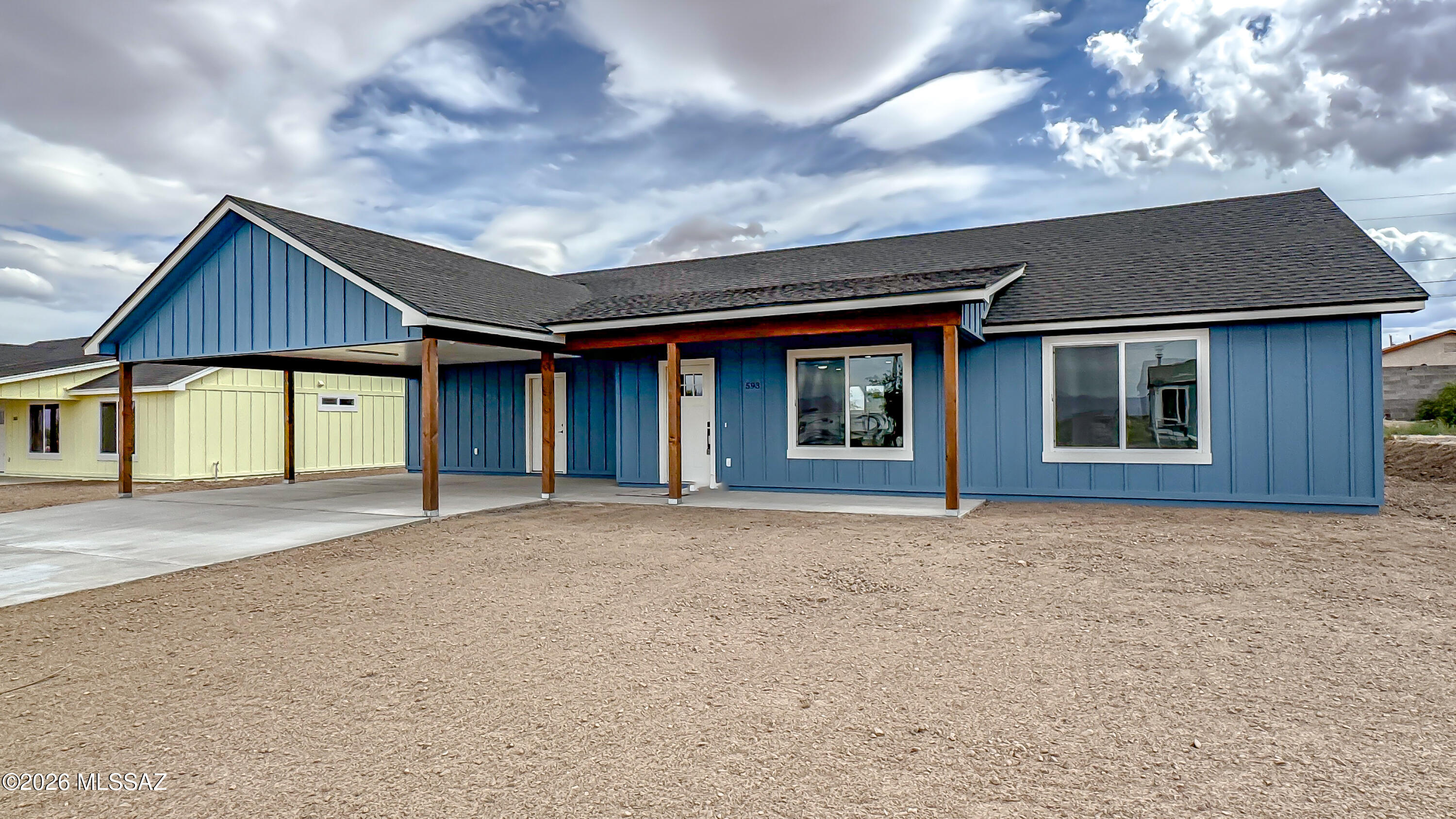 NO REQUIRED HOA FEES! Brand new construction with stunning Mt. Graham views! This thoughtfully designed 3 bedroom, 2 bathroom home offers an open concept layout with a split bedroom floor plan. The kitchen features quartz countertops, stainless dishwasher, gas range, and a large walk-in pantry. Beautiful blonde luxury vinyl plank flooring runs throughout. The spacious primary suite includes dual vanities, a deep soaking tub, separate shower, and large walk-in closet. Built with energy efficiency in mind,spray foam insulation (EVEN THE CARPORT) tankless on-demand gas water heater, dual pack heating and cooling. Large laundry room, covered front and back patios, and two-car carport. Located near Roper Lake, Dankworth Pond, and Swift Trail. Owner/Agent