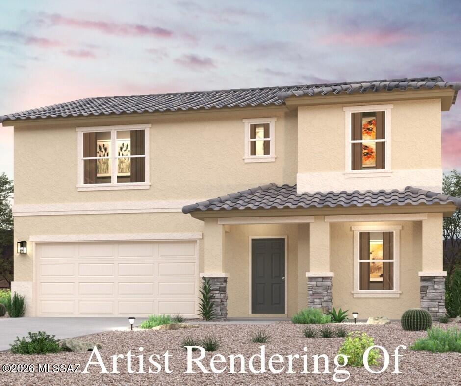 Unveil a world of comfort at this new residence within the peaceful confines of the Entrada Del Toro Community! The Ocotillo Floor Plan is designed to offer both style and practicality, making it an ideal choice for a variety of lifestyles. This two-story home features an open-concept layout on the main level, seamlessly connecting the kitchen, breakfast nook, and great room. The kitchen is a highlight, equipped with granite countertops and stainless-steel appliances, providing a modern and functional space for cooking and gathering. Adjacent to the kitchen, you'll find a formal dining room perfect for hosting meals, as well as a versatile flex space that can be customized to suit your needs, whether it's a home office, playroom, or additional living area.
