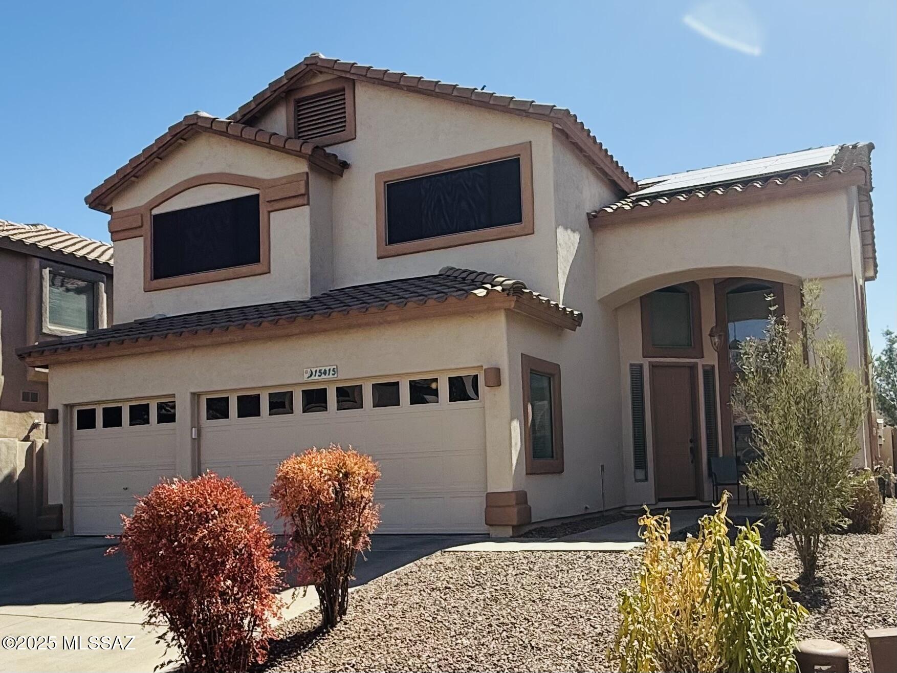 This beautiful solar-powered home is located in the gated community of Lago Azul in Rancho Sahuarita. It is just footsteps away from the community lake and other amenities, which offer many activities, including fishing. This home offers you a taste of luxury living with lots of space and natural light. The home's high ceilings give you a grand effect every time you walk into your home. Don't miss your opportunity to own this beautiful home! POTENIAL SHORT SALE.
