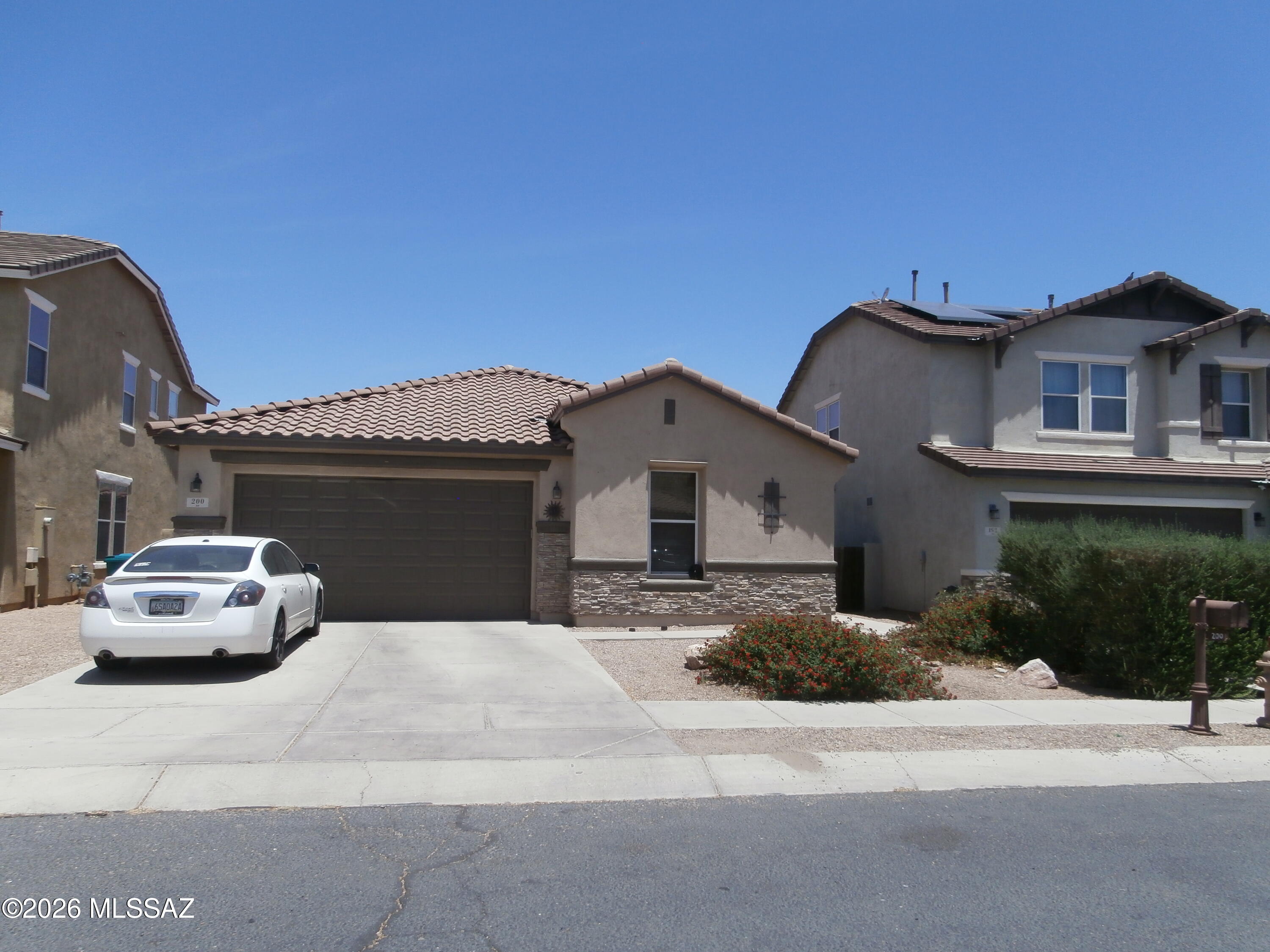200 W. Vuelta Friso Rancho Sahuarita. Nice one story home 1850 SQ. FT. Open floor plan built in 2007. Three bedrooms, 2 baths, Den. Kitchen has all appliances and plenty cabinets, pantry, work area and island that opens up to great room. Spacious master has on suite with garden tub, shower and walk-in closet. Back yard has covered patio and space for play. Enjoy all the amenities that Rancho Sahuarita offers. Walking distance to clubhouse, lake and rec center. Price reflects a one year lease.