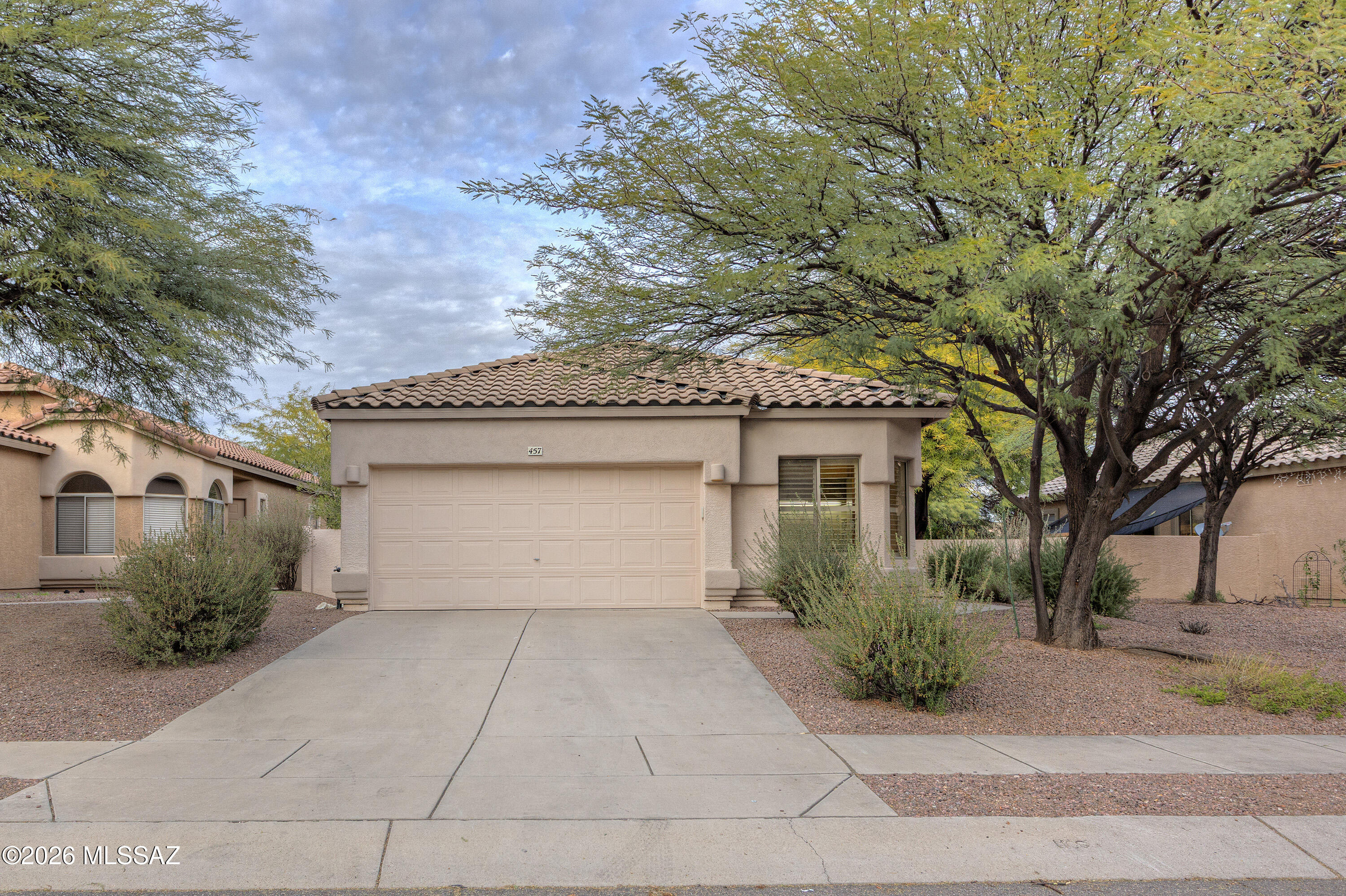 Move-in ready and set on a generously sized lot with mature landscaping, this charming home offers exceptional value. Though compact, vaulted ceilings create a light, open, and spacious feel. Tile flooring throughout and plantation shutters provide style and comfort. The primary suite features a deep soaking tub with tiled shower, creating a relaxing retreat. Enjoy outdoor living with a built-in firepit and zoned irrigation that keeps the landscape thriving. The garage includes cabinets and a workbench for added functionality. Located in Rancho Sahuarita's award-winning community with access to pools, fitness center, parks, trails, and community events. One of the most affordable move-in ready homes in Rancho Sahuarita, offering comfort, convenience, and lifestyle in one inviting package.