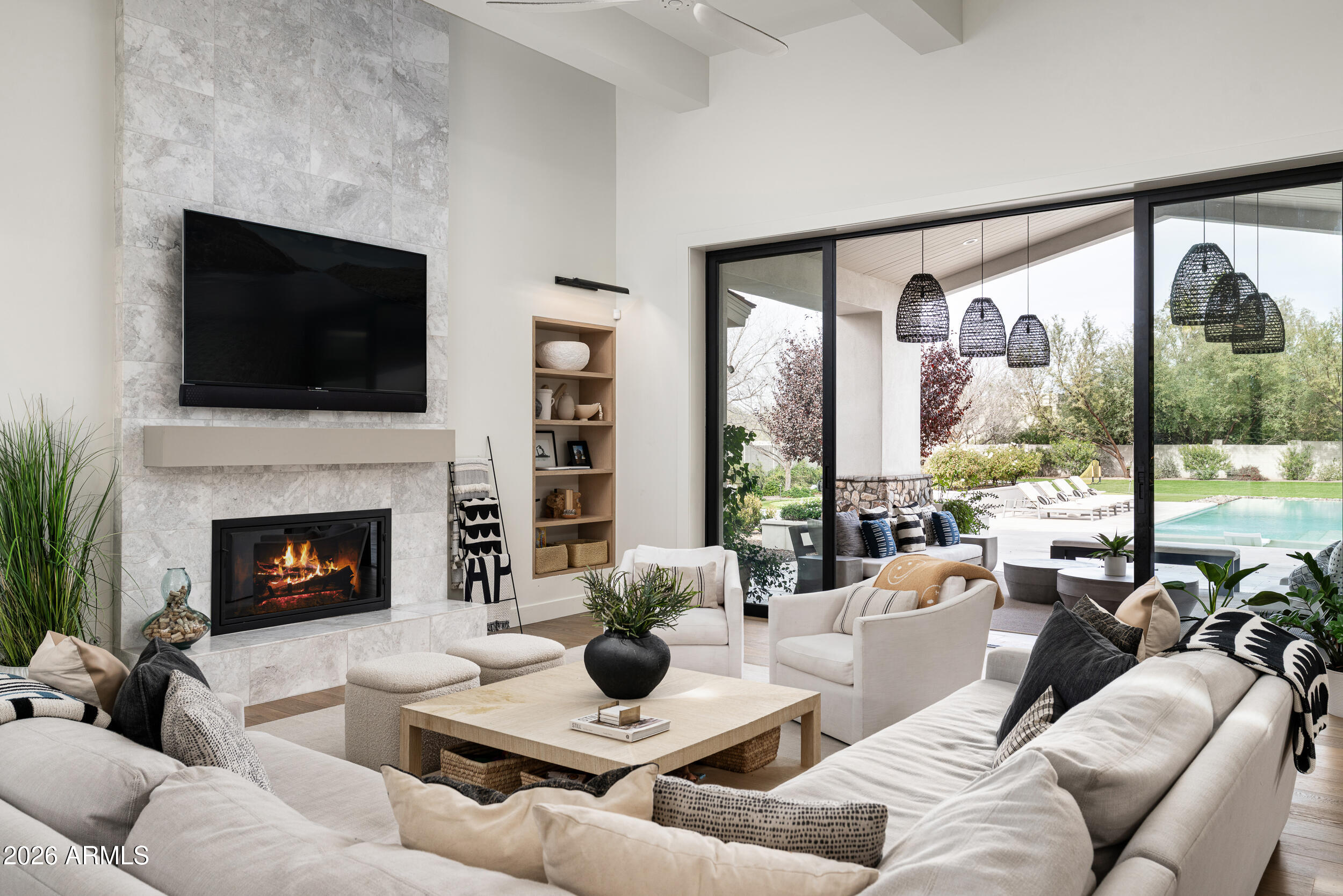 Located in the desirable Cholla Estates, this beautifully designed single-level residence offers approximately 4,500 square feet of thoughtfully curated living on a generous 1.5-acre homesite. Built in 2017 by Sonora West Development as the builder's personal home, the property reflects exceptional craftsmanship, quality, and attention to detail throughout. The open-concept great room flows seamlessly into a well-appointed kitchen featuring white cabinetry, a large center island, walk-in pantry, and high-end appliances--ideal for both everyday living and entertaining. Additional spaces include a formal dining room and private office, while four en-suite bedrooms provide comfort and privacy for family and guests. The spacious primary suite offers dual closets and the added convenience of an in-suite washer and dryer. Outdoor living is equally inviting, with a front courtyard entry and fireplace, and a large covered rear patio overlooking a resort-style pool, built-in BBQ area, and expansive grassy yard with ample space for a sport or tennis court. A rare opportunity to own a builder's personal residence in one of the area's most desirable settings.