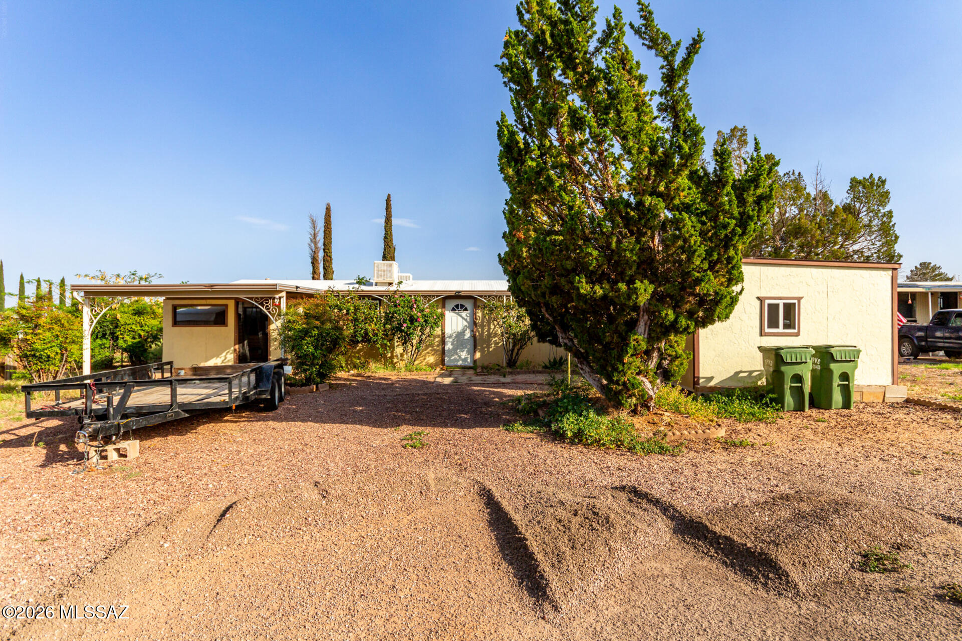 **JAN 2026 COMPLETELY RE-PLUMMBED + NEW WATER HEATER**Updated home located in Golden Acres Estates with views of Huachuca Mountains in an established Sierra Vista neighborhood. Property has 2 Evaporative Coolers, 2 Side Gates + 1 RV Gate in back and an 'Affidavit of Affixture' in place (VA Foundation). Major recent improvements include NEW plumbing, NEW water heater & NEW dishwasher offering added peace of mind for the next owner. A spacious 12' x 25' add-on room expands the living area & provides flexible space for a family room, home office, hobby area, or guest use. The functional floor plan features comfortable living spaces filled with natural light & a practical kitchen with an eat-in dining area suited for everyday living & casual gatherings. The primary ......