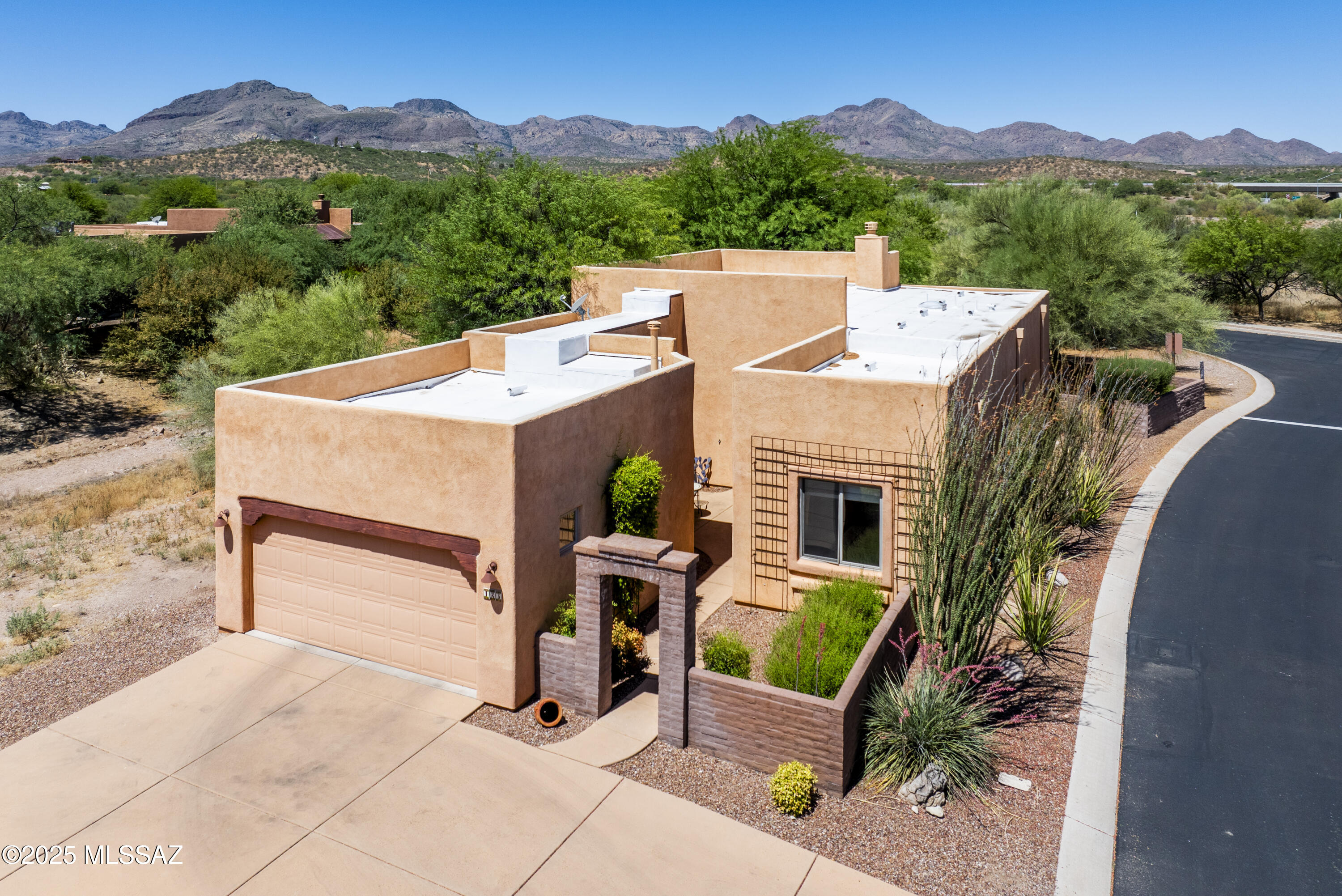 Nestled on a corner lot in the enchanting community of Barrio de Tubac, Trails Head, this charming 2-bedroom, 2-bathroom residence effortlessly combines comfort, convenience, and timeless appeal. The walled outdoor courtyard provides ample space for dining and entertaining, highlighted by a stunning pergola-covered terrace. Inside, the great room invites relaxation with its cozy fireplace, while the generous kitchen passthrough creates an open flow. The galley-style kitchen is a true chef's delight, featuring sleek stainless steel appliances, abundant cabinet space, and granite countertops. The primary suite boasts direct access to the terrace and a spacious en-suite bath, creating a private retreat. SEE MORE