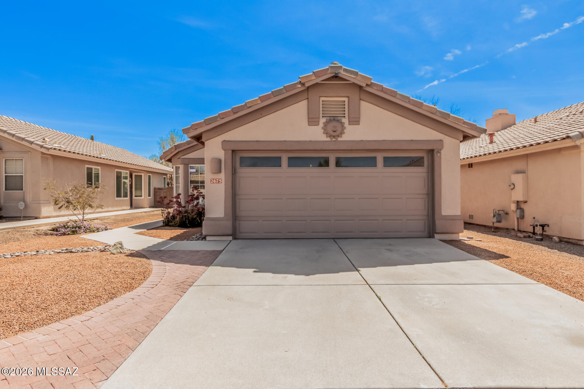 Located in the desirable NW community of Upper Bluffs, this 3-bedroom, 2-bath home offers a comfortable and functional layout with spacious living and dining areas, vaulted ceilings, and tile flooring throughout. The kitchen features a breakfast nook, ample cabinetry, stainless steel appliances, and a pantry for added storage. The primary suite includes an ensuite bath with dual sinks and a walk-in closet. The backyard is designed for easy outdoor living with a covered patio and low-maintenance turf. Just down the street, a neighborhood trailhead provides access to 100 acres of pristine Sonoran Desert, along with a community park featuring grassy picnic areas, a basketball court, and a children's play area. Conveniently located near award-winning Oro Valley schools, shopping, and More!