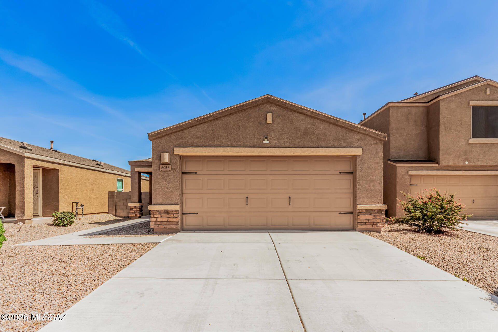 Welcome to the peaceful Cantera, where this charming home awaits you! Sits on a cul-de-sac, it offers 3 beds, 2 baths, 2-car garage, & a low-care landscape. The inviting interior showcases tons of natural light, neutral palette, brand new wood-look flooring in common areas, and plush carpet in bedrooms. Designed for everyday living & entertaining, the seamlessly flowing open layout is sure to impress! The kitchen boasts built-in appliances, granite counters, a pantry, a peninsula, and cabinetry w/crown molding. Sliding doors to the back! The main bedroom has a private bathroom with a walk-in closet. The backyard, with artificial turf & well-laid pavers, is the ideal spot to relax or enjoy BBQ. Great location close to schools, shopping, dining options, airport, & easy access to I-10.