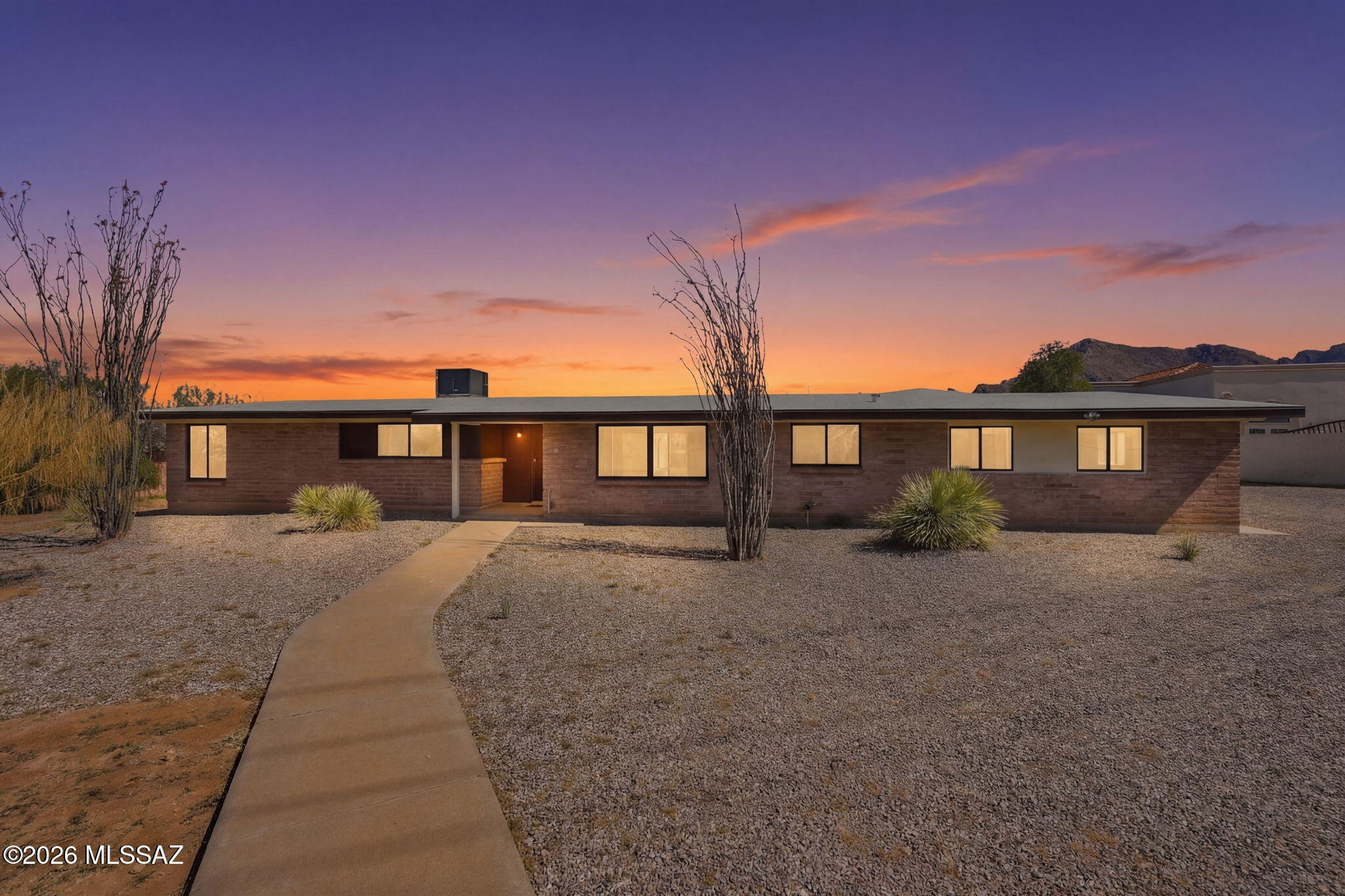 A private desert estate reimagined for modern living, multigenerational comfort, and inspired outdoor potential. Set on nearly 3/4 of an acre in Tucson's coveted Northwest, this rare property offers a beautifully updated main residence, a detached two-bedroom casita, and a massive detached garage. Together, they create a flexible, private compound with room to grow, design, and dream. Inside, the main house unfolds with warm modern style and effortless flow. The expansive chef's kitchen is the true heart of the home--welcoming and designed for gathering. A huge island wrapped in cabinetry anchors the space, offering storage on all sides and a generous breakfast bar for casual mornings or lively evenings. White upper cabinets pair with rich brown lowers for a modern, elevated contrast, while