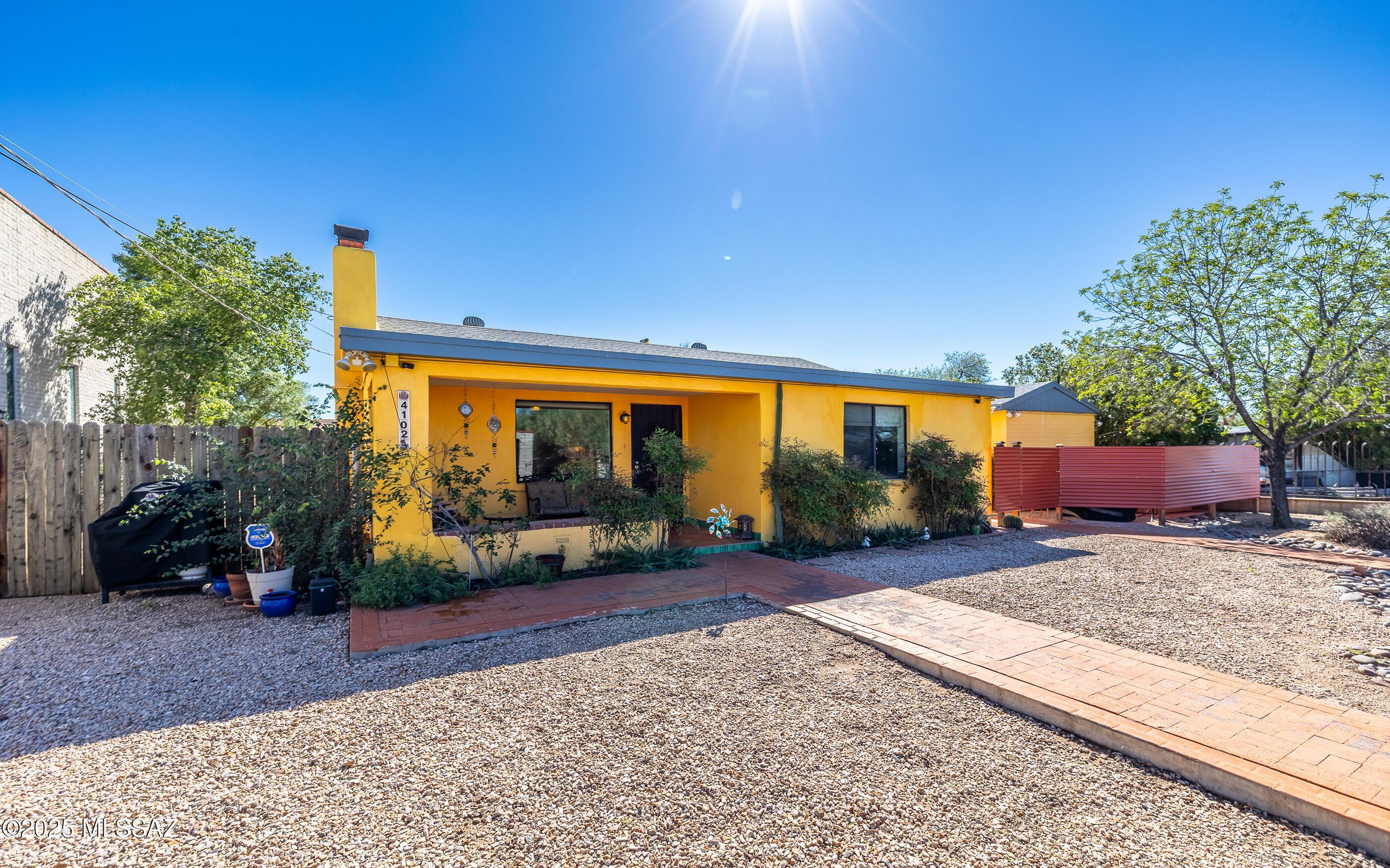 **OPEN HOUSE SUN 01/17**Income producing, solar-powered Garden District rare find! This fully fenced corner lot includes a 4-year-old $39K owned solar system and a beautifully renovated guest cottage generating ~$1,200/month--offering immediate value and flexibility. The main residence features a 3-bedroom split floor plan with original hardwood flooring, cozy bamboo-floored den, and ceiling fans thruout. The updated kitchen includes granite tile countertops, custom cabinets w/ glass-brick accents, and oversized walk-in pantry/laundry room. Private primary suite offers a spacious walk-in closet and a tiled shower w bench. Guest house includes a private entrance, custom tile, walk-in shower, and in-unit washer/dryer. Includes garage,shed, RV space, and views of the Catalina Mountains