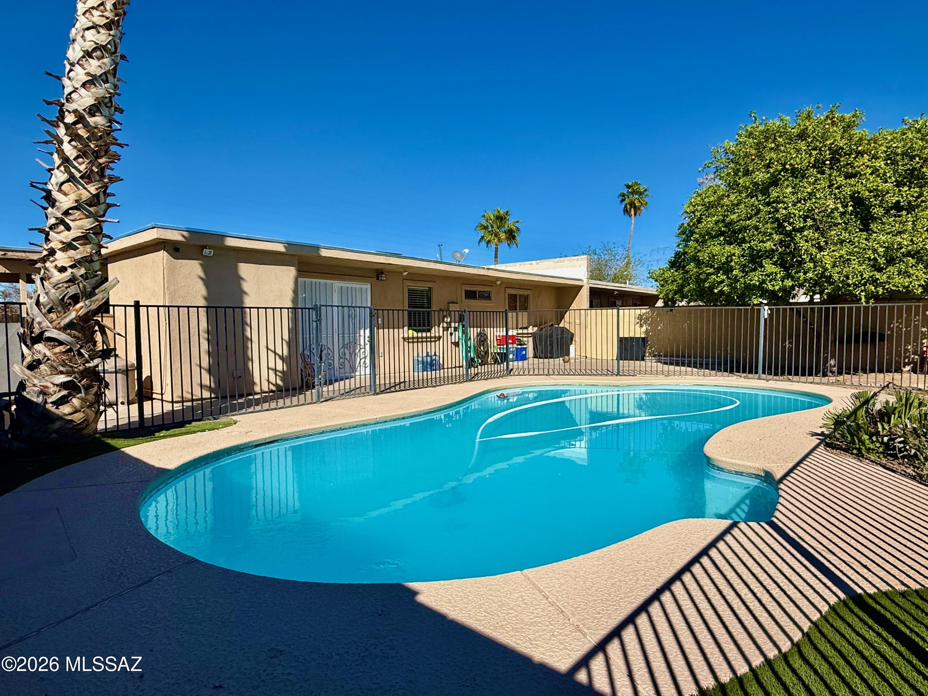 This is the one! Move-in ready 3-bedroom block home featuring an open and functional layout with tile flooring throughout all common areas and laminate flooring in the bedrooms. The remodeled kitchen offers ample storage and a cozy eat-in dining area. Enjoy the convenience of an indoor laundry room and carport parking.Step outside to your private backyard oasis, refreshing swimming pool, mature fruit trees, and additional storage, all situated on a spacious lot. This home combines comfort, charm, and outdoor living, schedule your private showing today before it's gone!