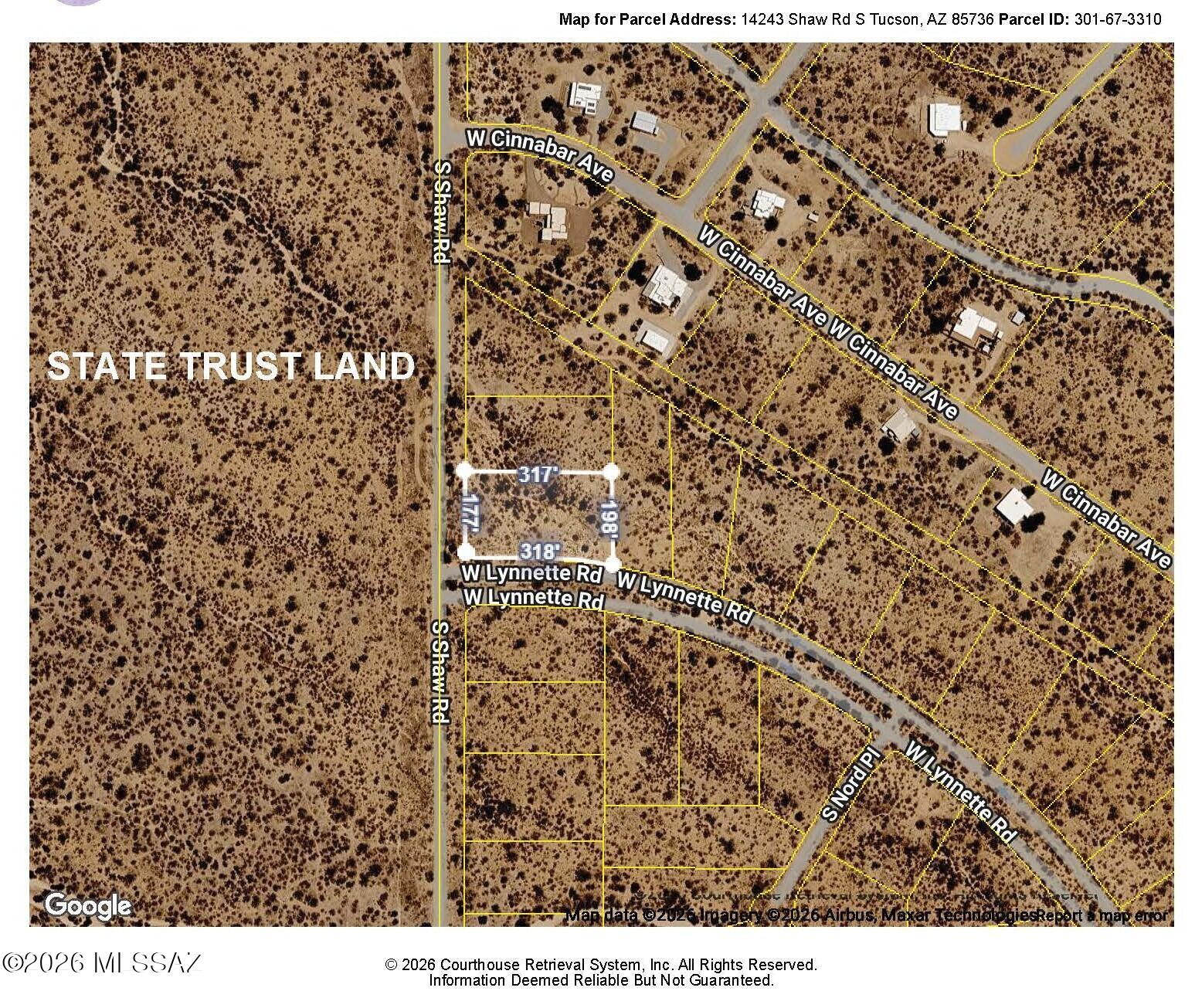 Build your dream home or invest in wide-open desert on this 1.371-acre (59,710 sq ft) vacant lot in the Diamond Bell Ranch area ofTucson. The property sits across from Arizona State Land Trust, providing enduring open space, privacy, and unobstructed desert views. Enjoy sweepingpanoramic mountain vistas of the nearby Sierrita Mountains, including views of iconic Kitt Peak and the majestic Baboquivari Peak Wilderness, known tothe Tohono O'odham Nation as ''La Bestia,'' a sacred landmark. Bonus opportunity: the adjacent parcel at 14223 S Shaw Rd (APN 301-67-330) is alsoavailable, offering 1.203 acres (52,403 sq ft)--ideal for expanded acreage and flexibility. Buyer to verify zoning, utilities, and access.