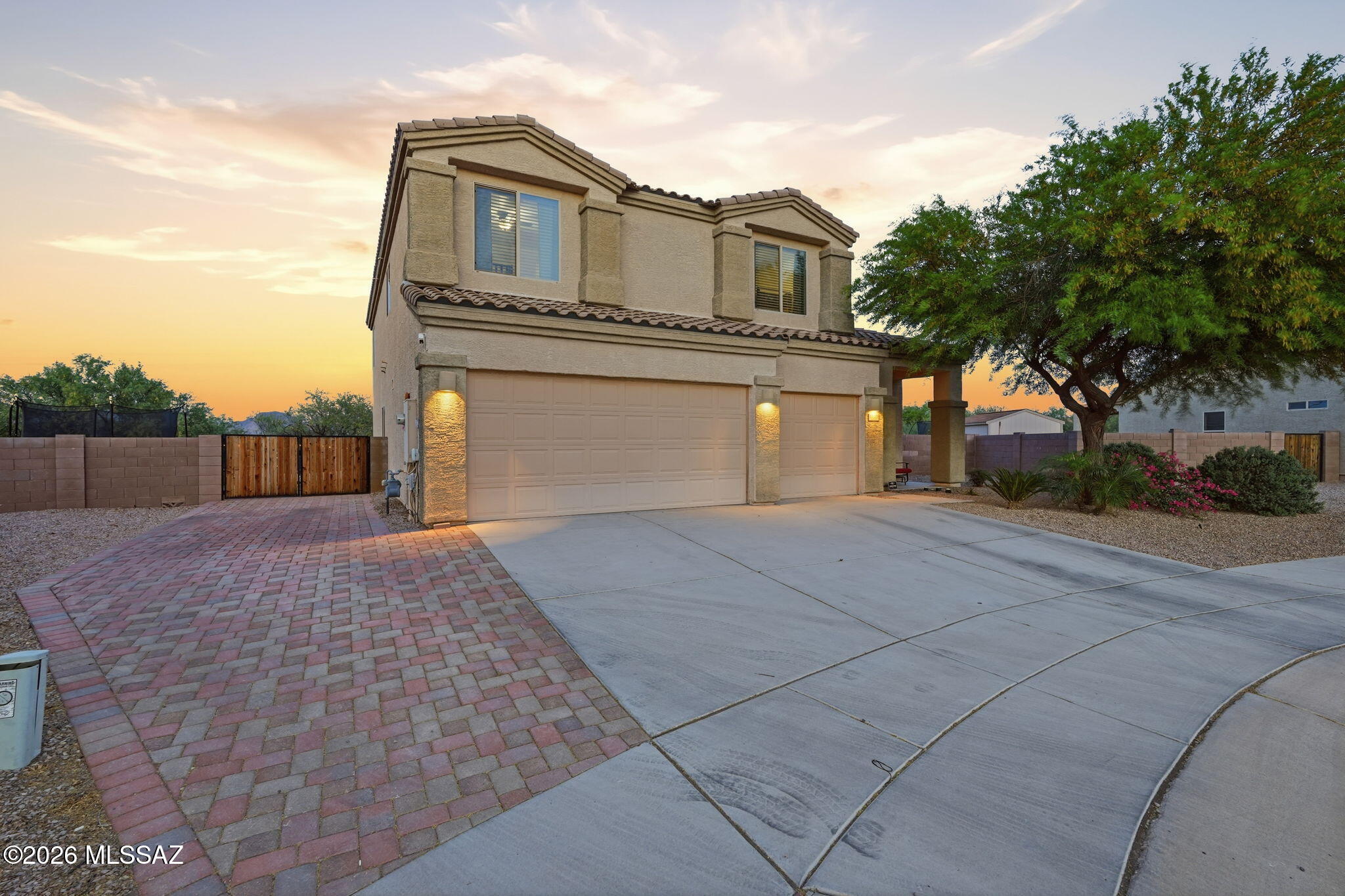 This spacious 4 bed/3 bath home on a huge cul-de-sac lot is the house you've been looking for. This home has a full bedroom & bath downstairs, a 3-car garage, & beautiful mountain views. The 2026 remodeled kitchen features granite countertops & opens to a layout designed for everyday living. The front side yard has pavers creating a 4th parking space, and the trailer gate gives you easy access to the backyard. Backing to green space, this large lot offers added privacy and room to enjoy the outdoors. The backyard is a true oasis with drip irrigation, palm trees, & mature fruit trees including peach, apricot, lemon, pomegranate, & tangerine. The home's placement creates shade in the backyard making it useable throughout the day. HOA fees include trash and recycling. Don't miss this home!