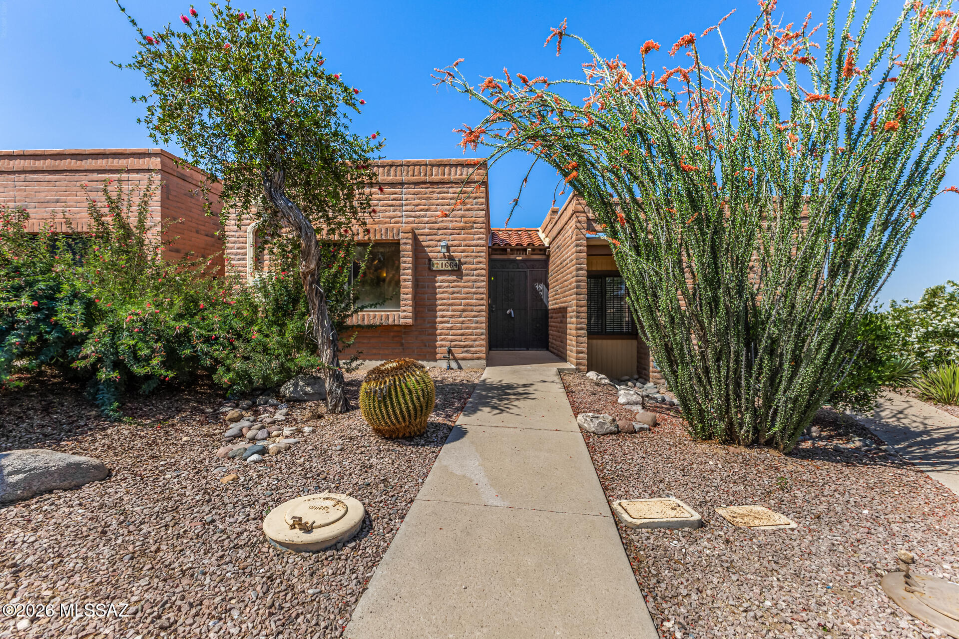 Welcome to this charming townhome in the active adult 55+ community of La Cholla Hills. Open and inviting great room floor plan with great space, contemporary track lighting, a mirrored wall, and durable tile flooring for easy maintenance. The well-appointed kitchen comes with ample wood cabinetry, essential built-in appliances, a pantry, and a pass-through with a breakfast bar for casual meals. Both bedrooms are cozy and well-sized. Enjoy the back patio offering breathtaking views of the distant mountains and privacy. The Community boasts shuffleboard and tennis courts, a refreshing spa and pool, a recreation center, and many more!