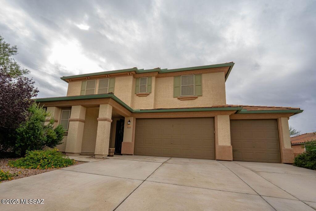Welcome to 10242 E. Placita De Dos Pesos, an exquisite 4-bedroom, 3-bath home ideally located on a coveted corner lot in Tucson's vibrant Eastside. This beautifully designed one owner residence features an open floor plan with a split-bedroom layout, ensuring both comfort and privacy. The gourmet kitchen is the centerpiece, equipped with stainless steel KitchenAid appliances with a double oven, granite countertops, custom backsplash, and soft-close cabinetry--perfect for both everyday living and entertaining. Eco-conscious buyers will appreciate the owned 5.2 kW solar system, rainwater harvesting system (approximately 3,000 gallons) used to water several raised bed garden spaces which includes nutrient-dense, amended soil capable of sustaining a year-round garden.