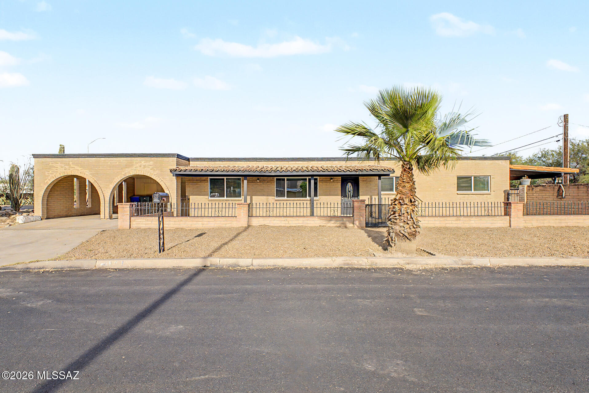 Fully gated property on a desirable corner lot! Boasting two covered carport spaces and attractive curb appeal. Light and bright interior features wood-look tile flooring, neutral paint, and thick baseboards. The sunken living room adds character, the formal dining provides the perfect setting for gatherings, and the cozy family room showcases a classic beehive fireplace for relaxing. Beautiful kitchen has SS appliances, a breakfast bar, white cabinetry, and sleek granite counters. Delightful main retreat offers two spacious closets, direct backyard access, and a private bathroom. Fabulous backyard includes a covered patio, charming flagstone patio, a fragrant orange tree, and a convenient storage shed. Great neighborhood close to I-19, river walking paths, shopping, and dining. Stop by!