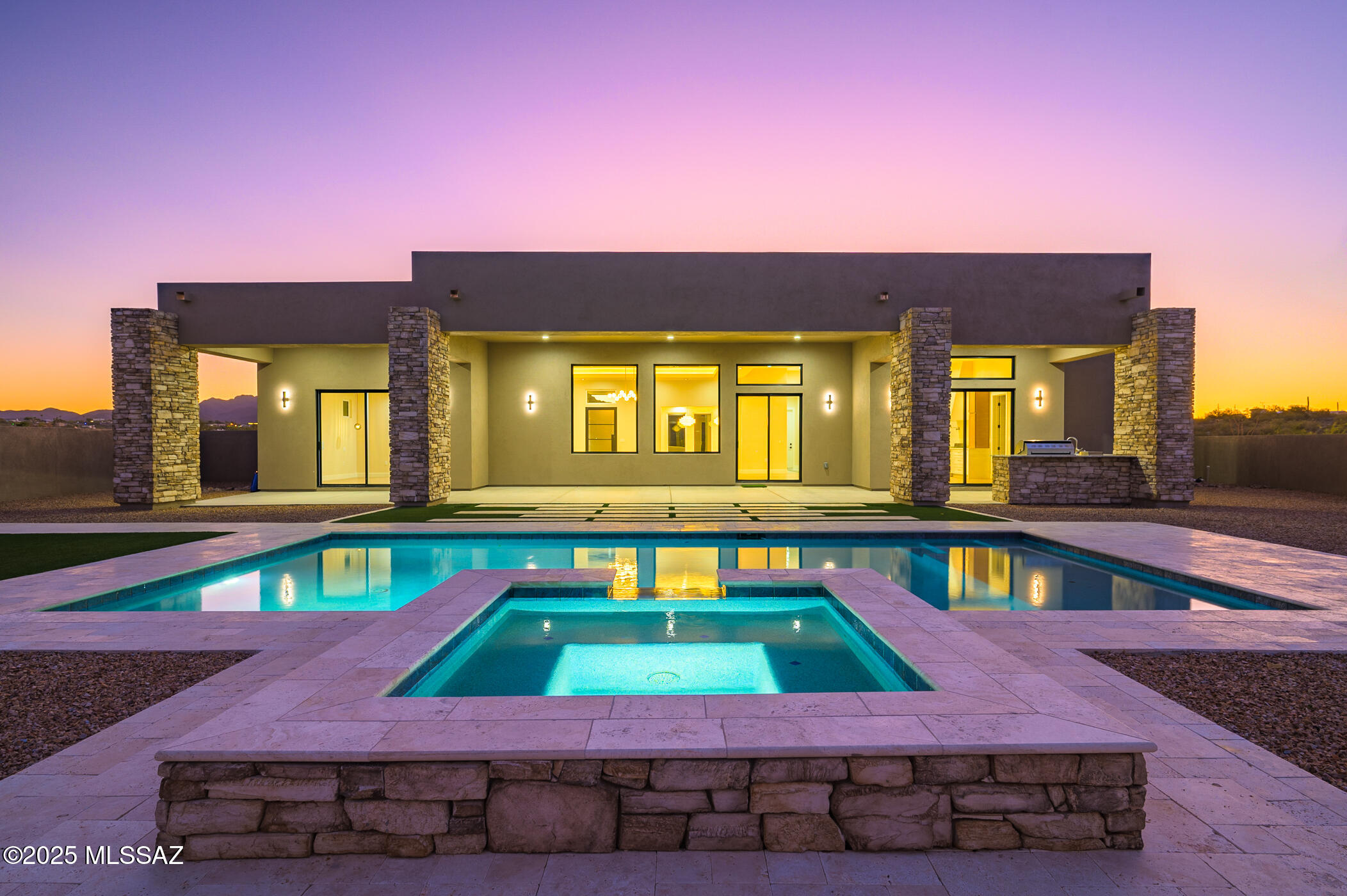 Welcome to this brand new construction located on Tucson's west side, offering 3,338 SqFt of thoughtfully designed living space in a gated community. This 4 bedroom, 4 bathroom home features a 3 car garage, a fireplace, and high end finishes throughout. The open layout is ideal for both daily living and entertaining. The backyard is built to impress with a pool, spa, and built in outdoor grill, all set against incredible mountain views. Clean lines, quality craftsmanship, and attention to detail are evident throughout the home. A rare opportunity to own new construction with resort style outdoor living in a private, gated community.
