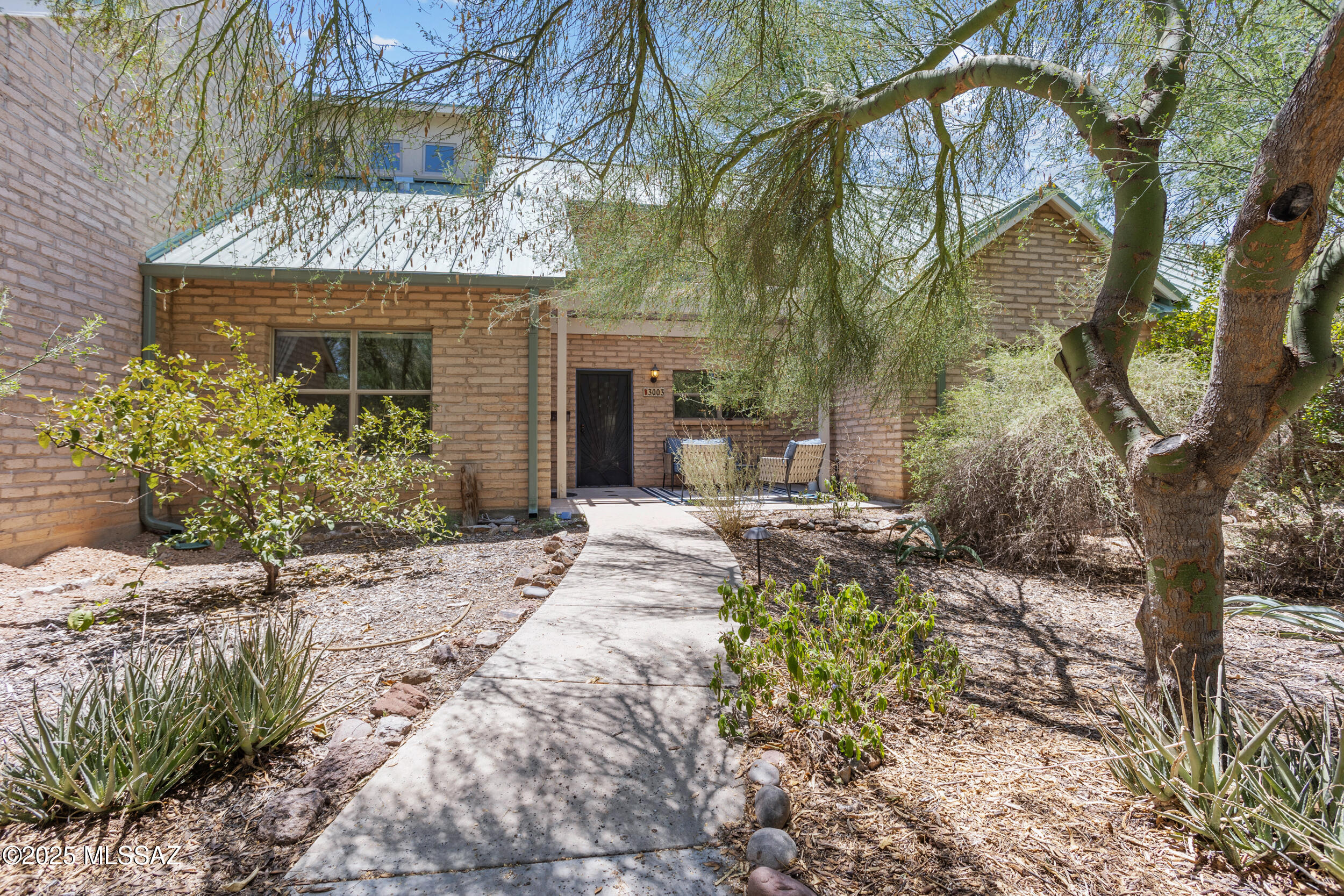 Welcome to Milagro - An Award-Winning Cohousing Community in the Desert!Located on a 43-acre site with 35 acres preserved as natural desert, Milagro is one of Tucson's most unique and environmentally sustainable communities. With just 28 'green built' homes crafted from high-end, locally sourced materials, Milagro offers a rare blend of modern comfort, eco-conscious living, and strong community connection. (Learn more at MilagroCohousing.org.)Home Features: This thoughtfully designed home includes two bedrooms and two bathrooms on the main level, plus a stackable washer and dryer for convenience. The open kitchen flows into the living and dining areas, enhanced by soaring vaulted ceilings that fill the space with natural light.