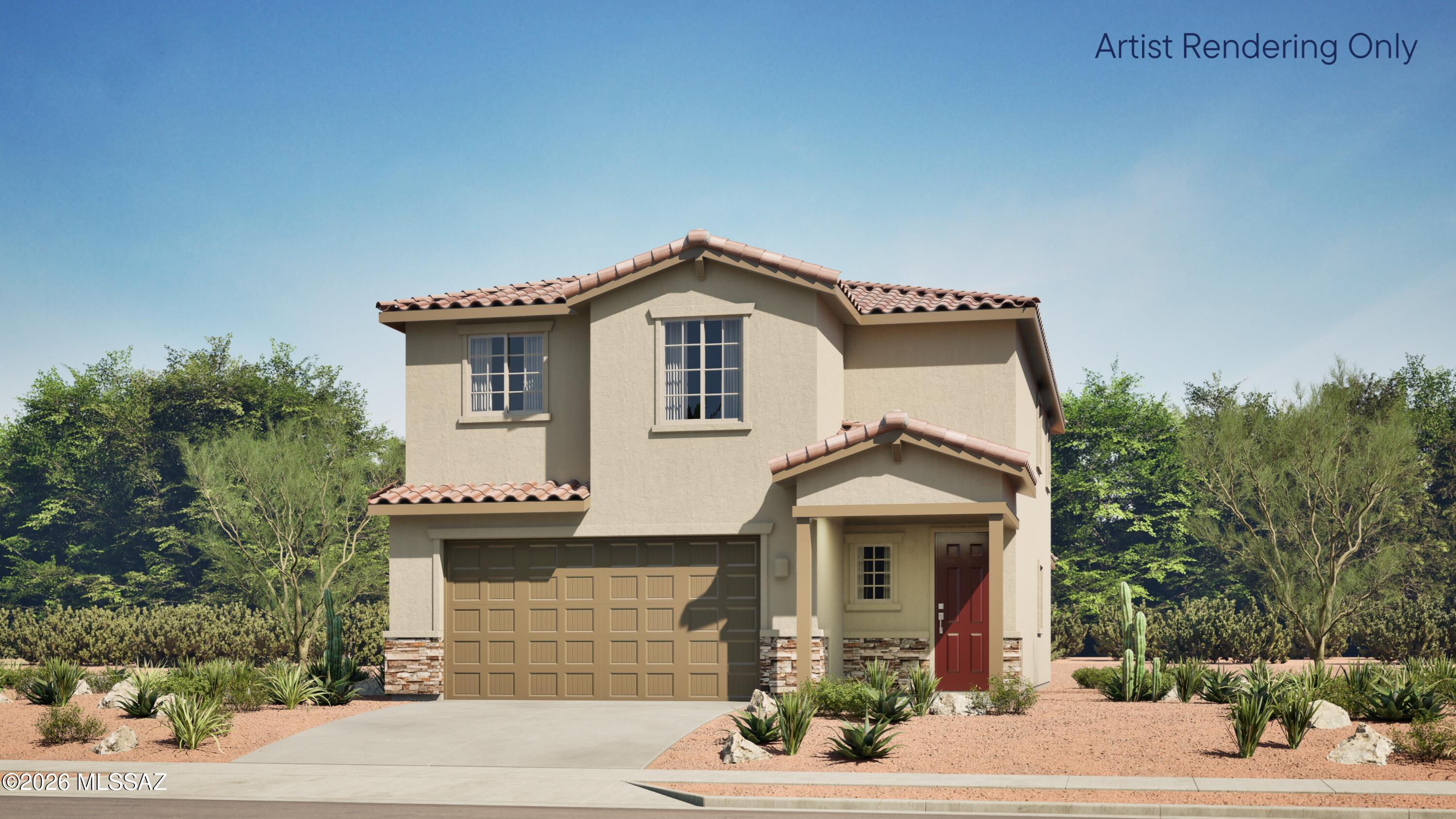 This new two-story home is ready for modern lifestyles. On the first floor, an inviting open-concept layout blends the kitchen, living and dining areas, with a secluded bedroom tucked into a private rear corner. On the second level, a versatile loft provides a convenient shared living area easily accessible from four additional bedrooms and a luxurious owner's suite, complete with a full bathroom and walk-in closet.This home includes GE(r) stainless steal appliances, Rinnai Tankless Water Heater, prep for reverse osmosis, Quartz Countertops, 2'' faux wood blinds, LED lighting and so much more! As an added bonus, this home includes a washer and dryer - move-in ready and waiting for you!
