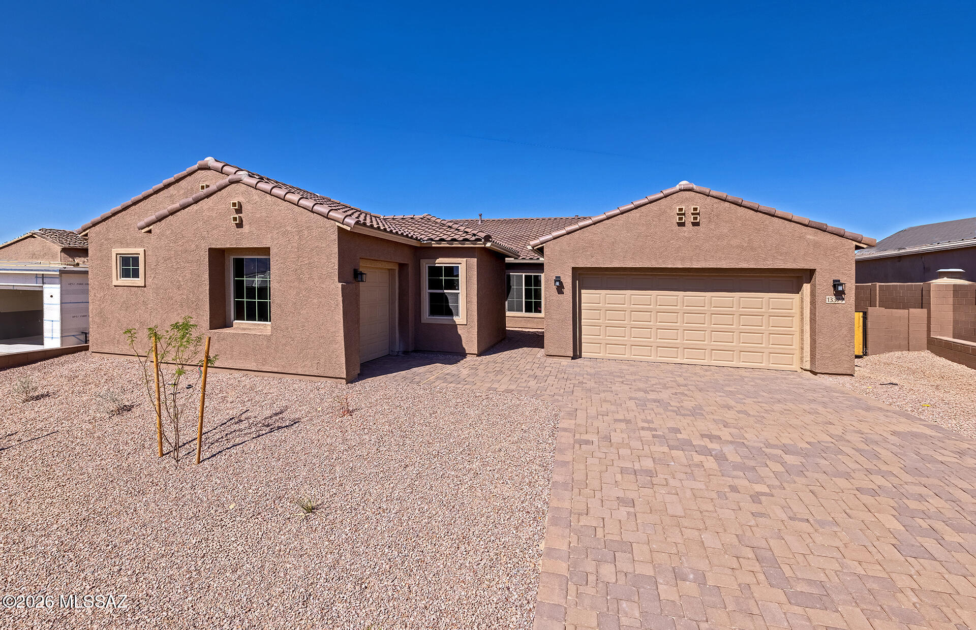 Move-in ready March 2026. This designer home features a split floor plan with a contemporary exterior and paver driveway. Inside, enjoy a chef's kitchen with gas cooktop, stainless steel appliances, upgraded shaker cabinets, granite counters, and custom backsplash. Owner's bath offers a low-threshold tiled shower with quartz accents. Beautiful 8x48 tile flooring throughout. Energy-efficient features include tankless water heater, dual-pane windows, and water-saving fixtures.