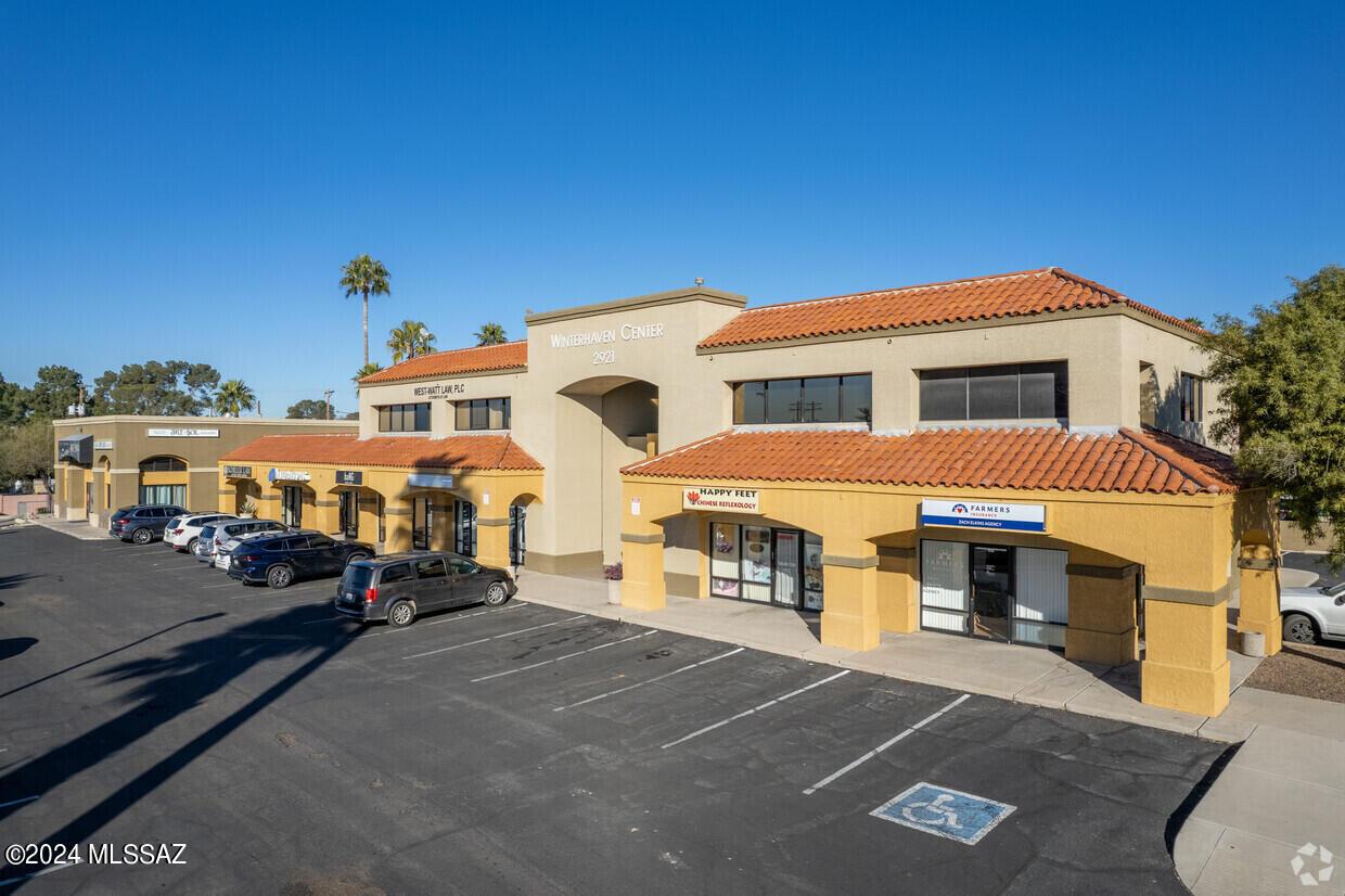 Fantastic 2nd floor secured courtyard entrance office space (1269 sq. ft.) in the popular Winterhaven Center and neighborhood. Large front reception area with 4 separate office spaces. This office has its own private bathroom, break area. Plenty of parking and covered parking spots available. Call for appointment showing.Excellent for many different professional office uses.