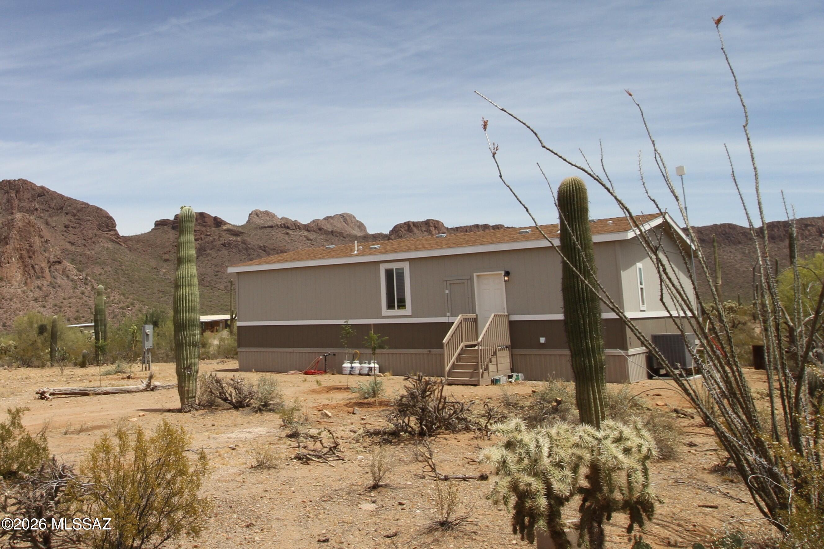 Experience breathtaking views of the Sonoran Desert in this stunning Mohave Home, newly constructed in 2024. Nestled on 4.2 acres, this residence boasts an array of amenities and upgrades, including luxurious natural stone countertops and expansive panoramic windows showcasing the magnificent mountains, saguaro landscape, and local wildlife. Inside, you'll find a generous open floor plan with two guest bedrooms sharing a modern bathroom, while the spacious owner's suite features a private bathroom and a walk-in closet. For outdoor convenience, the property is equipped with electric hookups for two RVs and an independent outlet for black water disposal. This beautiful home is move-in ready--don't miss the chance to make it yours! Seller will consider offers between $349,500 to $359,500