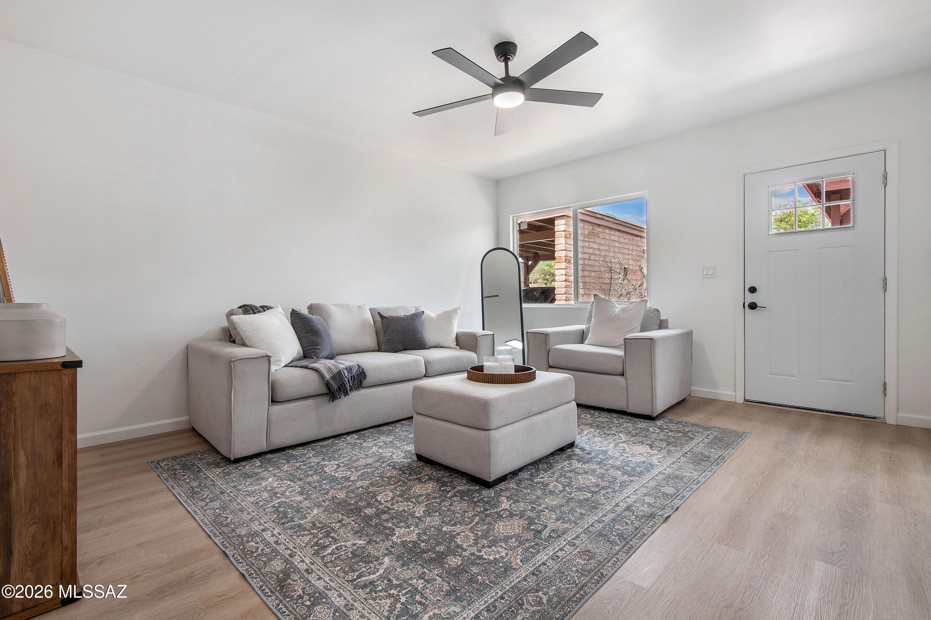 Beautifully renovated 2-bedroom, 1-bath townhome in the heart of Central Tucson! This move-in ready property features a bright, open-concept living space with abundant natural light and modern finishes throughout. Enjoy brand-new laminate wood-look flooring, fresh interior updates, and a clean, contemporary design. The fully updated kitchen showcases white shaker cabinetry, sleek quartz countertops, stainless steel appliances, and ample storage. The spacious living and dining areas create a seamless flow perfect for both relaxing and entertaining. Both bedrooms are generously sized with comfortable layouts, while the remodeled bathroom features stylish fixtures and finishes. Major system upgrades include a new HVAC system and a new roof, offering peace of mind for years to come.