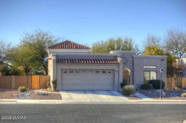 Former Model Home with all steel construction in prestigious Pedrigal. 15ft great rm ceiling with halo lighting, scored dyed concrete floors, Heat&Glow Behive Fireplace. Gated Atrium Courtyard Entry w/fountain, extended flagstone covered patio &walkway. 2 Car Garage w/blt in cabinets, water softener. Kitchen w/granite counters/stone backsplash. Mst. Bath w/dual sinks.huge walkin shower & travertine tile, granite counters, dual sinks and walk in closet. Upgraded lighting throughout, gorgeous Spanish subdivision with natural gas lantern in font yard. Close to Tucson OMNI Resort & Spa, YMCA, PCC, shopping & dining. Presently rented on Mo to Mo at $2000. Occupant will stay for investor, or leave if owner occupant. Showing available at certain time in showing instructions