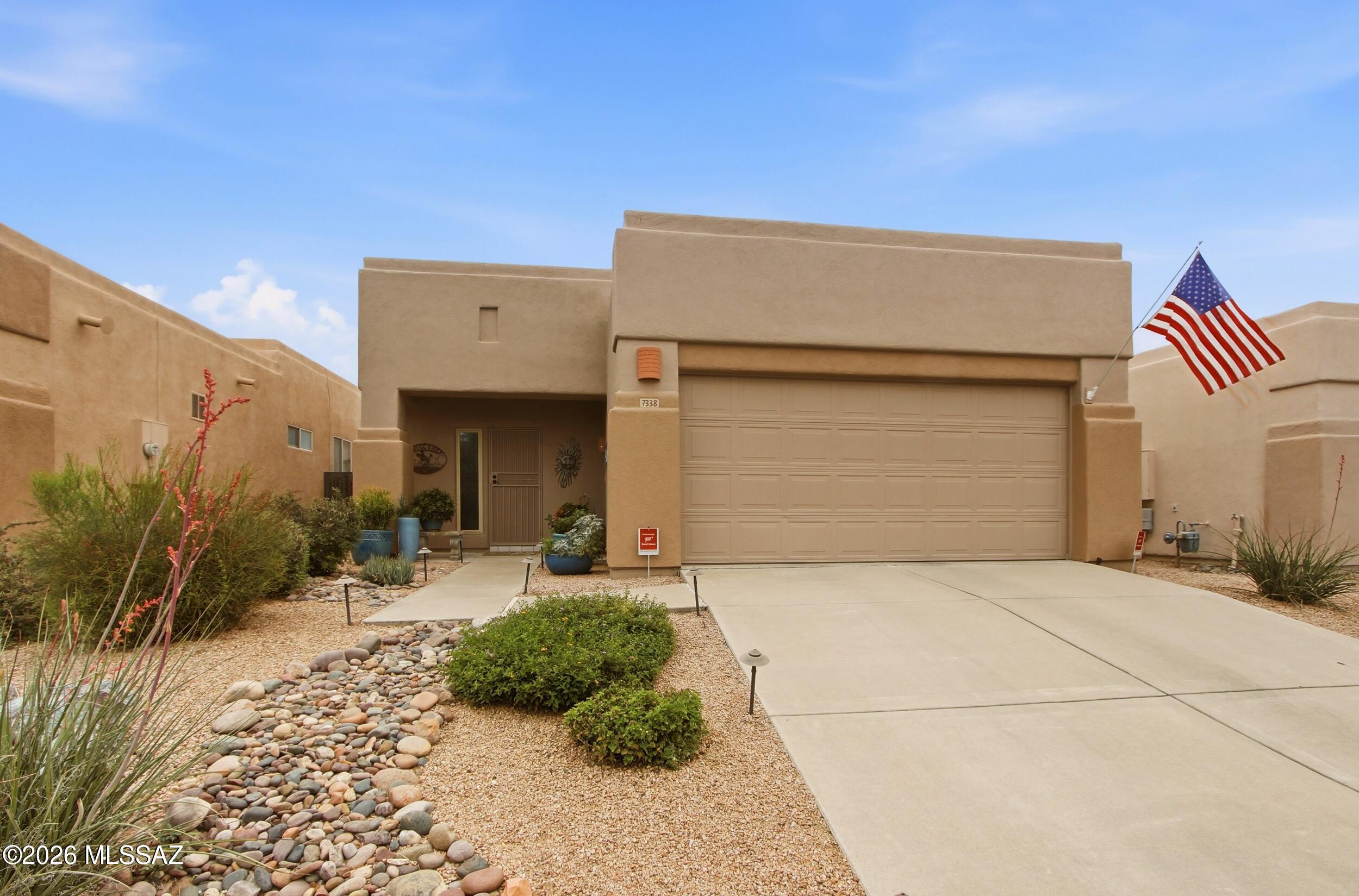 Pristine desert sanctuary in the coveted, gated Rancho Esperero. This rarely available model sits on an elevated, peaceful cul-de-sac lot offering maximum privacy and stunning front-row mountain views. Meticulously maintained with significant upgrades: New HVAC & water heater (2019), exterior paint (2019), epoxy garage floor (2022), and roof/parapets resealed (Sept 2024). Interior features upgraded vinyl windows/doors with high-end plantation shutters throughout. The resort-style backyard is an entertainer's dream featuring a built-in gas grill, gas firepit, custom pavers, and aluminum pergola. This turn-key 2BR/2BA gem offers a low-maintenance lifestyle in a premier Tucson location. Pristine condition and true pride of ownership--don't let this one get away!