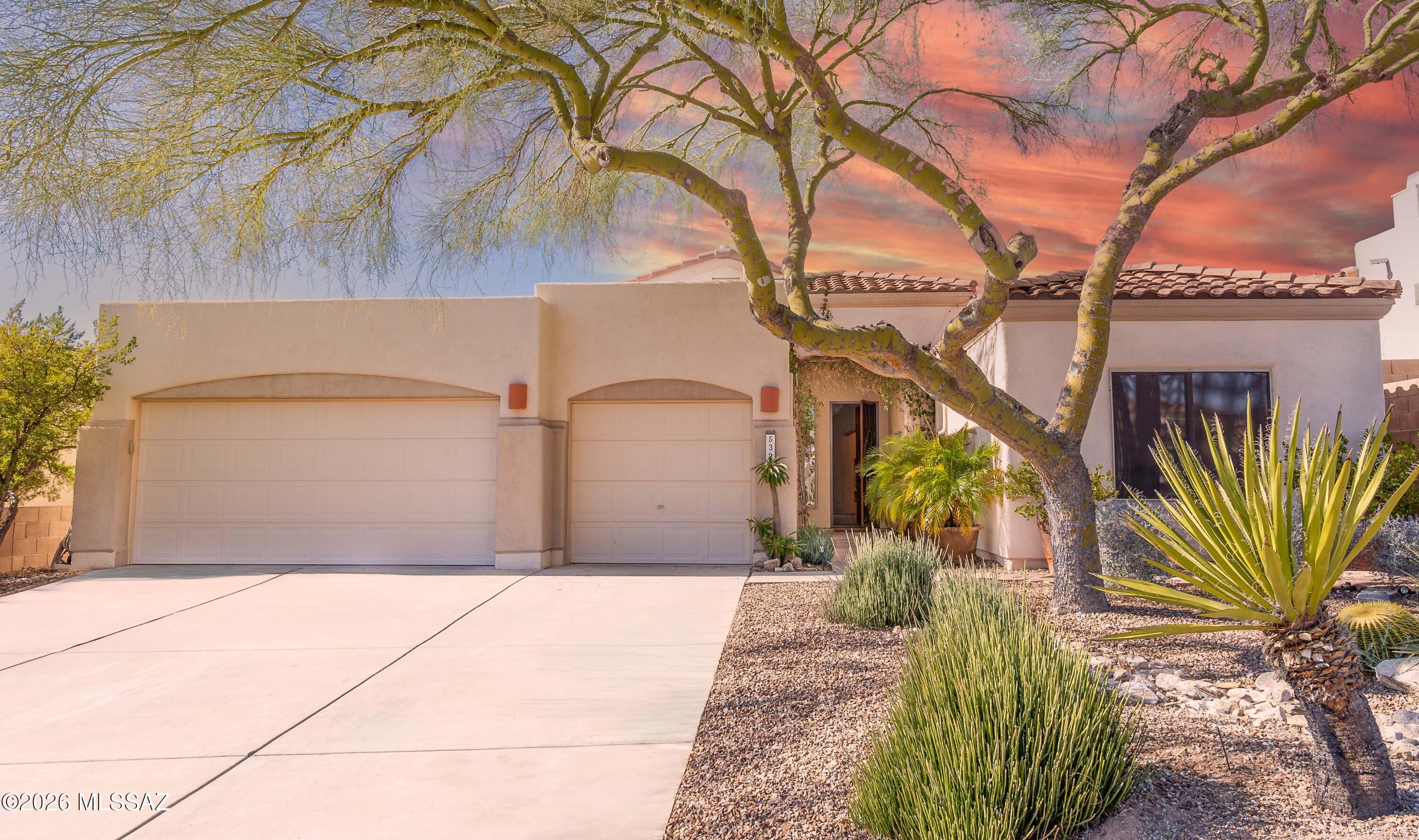 Stunning mountain views surround this beautifully maintained 4-bedroom, 3-bathroom, single-story home with a 3-car garage, located in the highly desirable, gated community of Sabino Springs. Appreciate the open, inviting floorplan, high ceilings, and comfortable living space centered around a cozy fireplace. Oversized sliding glass doors fill the home with natural light and seamlessly connect the interior to a private backyard oasis, designed for relaxation and entertaining, featuring a heated saltwater pool and hot tub, low-maintenance desert landscaping, and breathtaking views of the Santa Catalina Mountains. The renovated kitchen is a chef's dream, offering abundant countertop space, a large island, breakfast bar, 42'' custom Alder cabinetry, and stainless-steel appliances--perfect