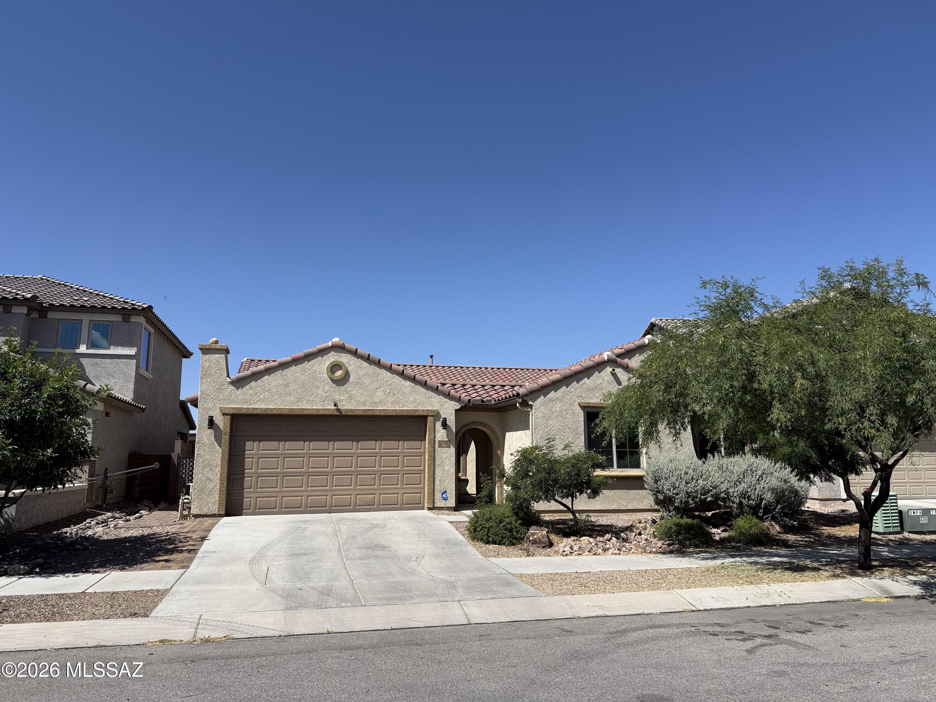 Looking for a large home with no rear neighbors? Look no further than this house that features a court yard entry, open split floor plan with a chefs delight kitchen, Espresso cabinetry w/crown molding. Double ovens, pull out shelves, upgraded range, large granite breakfast bar and island that opens to dining rm and great rm. Large walk in pantry too! 3 bedrooms and a den w/French doors. Large master with in-suite bath, linen closet, walk in closet, garden tub and shower and dual sinks. Hall bath has a linen closet and tub and 1/2 bath off of great room is a bonus. Back yard is stubbed for natural gas. This established newer community has a community pool, rec room, dog park an open spaces to enjoy throughout. All of this and on a cul-de-sac too! And Vail school district as well!