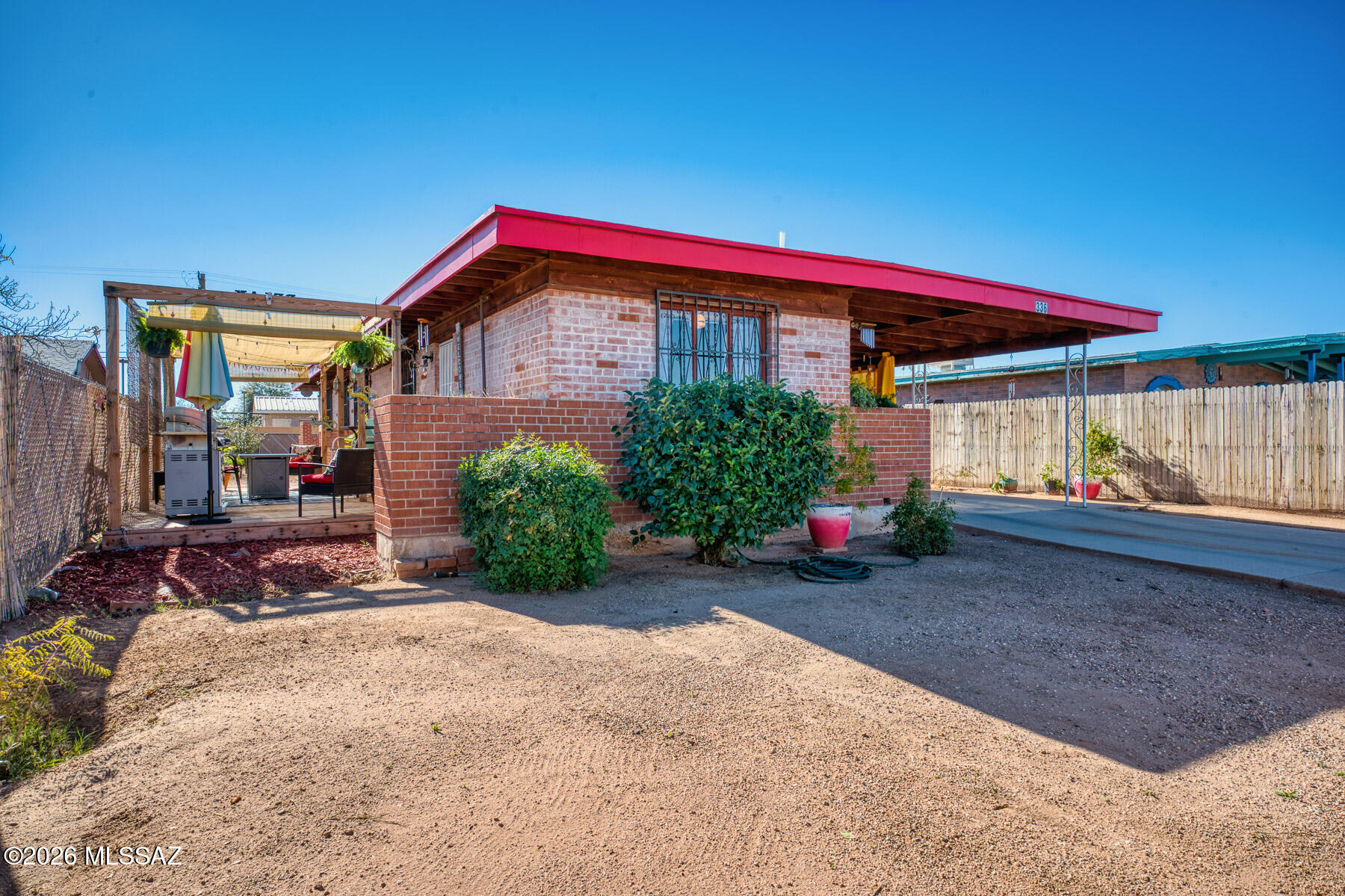 Pride of ownership shines in this classic Tucson brick home with desirable north/south exposure! The recently coated roof and fully fenced lot add peace of mind, while the east-side deck offers beautiful mountain views and the perfect spot to enjoy morning sunshine. The kitchen is at the front of the home and features ample storage along with tiled countertops. The 3-bedroom, 2-bath layout includes tiled counters in both bathrooms for easy care and timeless style. Major updates include a new A/C and furnace in 2023, a newer water heater, and all appliances replaced within the last couple years making this home truly move-in ready. Excellent condition hot tub conveys in sale. Must see to appreciate!