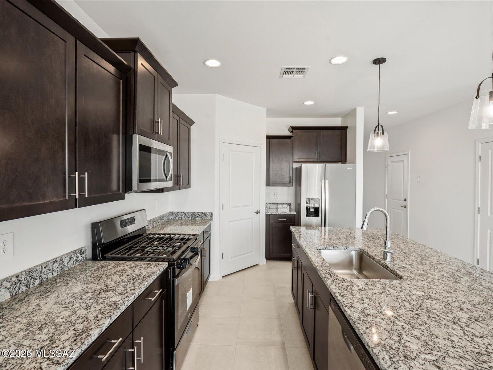 Available NOW! The Sapphire floorplan is a spacious, energy-efficient home with an open-concept layout ideal for entertaining. Features include umber cabinets, dusty white/gray granite countertops, stone-look tile, and warm beige carpet in our Calm package. Located less than 10 minutes from I-10, with easy access to downtown Tucson and major employment hubs. The community offers bike/walking trails and playgrounds. Move-in ready with washer, dryer, fridge, and whole-home blinds. Every home is built with innovative energy-efficient features for comfort, savings, and peace of mind.