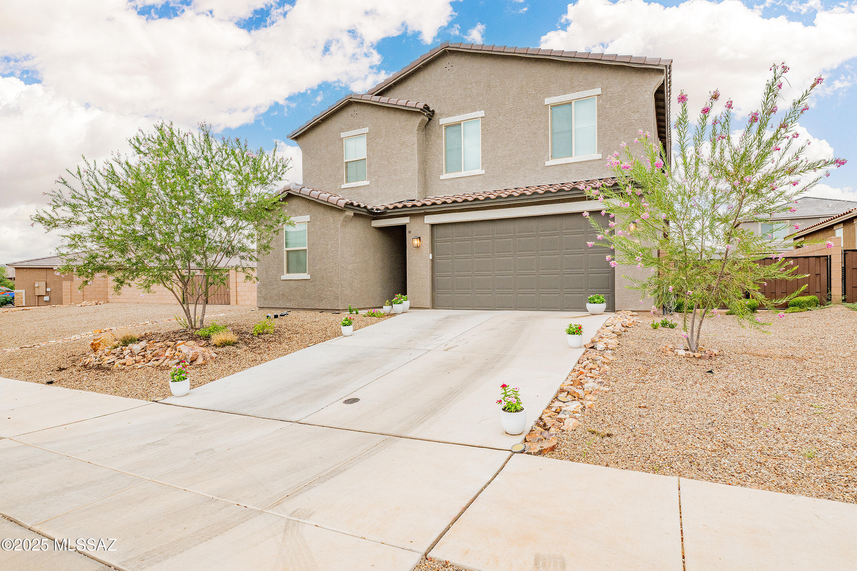 Stunning 4-bed, 3-bath Pearl plan by Richmond American Homes, built in 2022 on a Prime Double Lot. This spacious two-story features an open great room, dining area, and upgraded kitchen with quartz counters, stainless steel appliances, and beautiful white cabinetry. Main level includes a guest bedroom and full bath. Upstairs offers a versatile loft,, laundry room and owner's suite with walk-in closet and private bath. Upgrades include granite bath counters, tile flooring in wet areas, 2 yard gates, and an extended covered patio overlooking the beautiful yard. Move-in ready with modern finishes throughout.