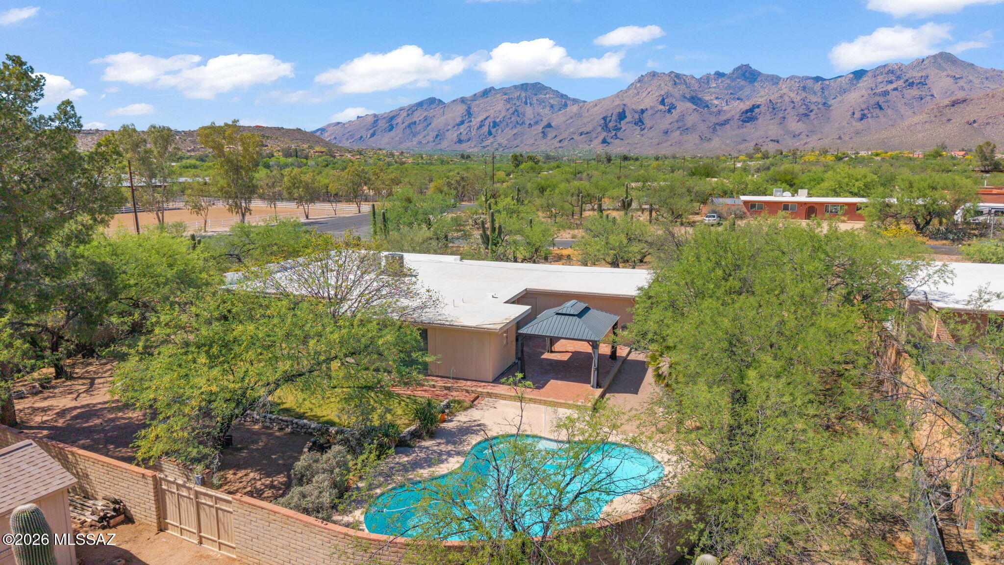 Nestled in the desirable Tres Lomas North subdivision of Northeast Tucson, this spacious corner lot property offers stunning mountain views and beautiful sunrise and sunset skies. The thoughtfully designed interior features abundant natural light and comfortable living spaces, perfect for everyday living and entertaining. The backyard is a true desert retreat with a sparkling pool, covered patio, and gazebo. Enjoy mature Sonoran Desert landscaping including mesquite trees, saguaros, and a variety of native cacti and plants, along with additional greenery and a small grass area for added versatility. This is more than just a home, it is your private sanctuary where Tucson's natural beauty meets timeless desert living! Conveniently located near shopping, dining, and outdoor recreation, this