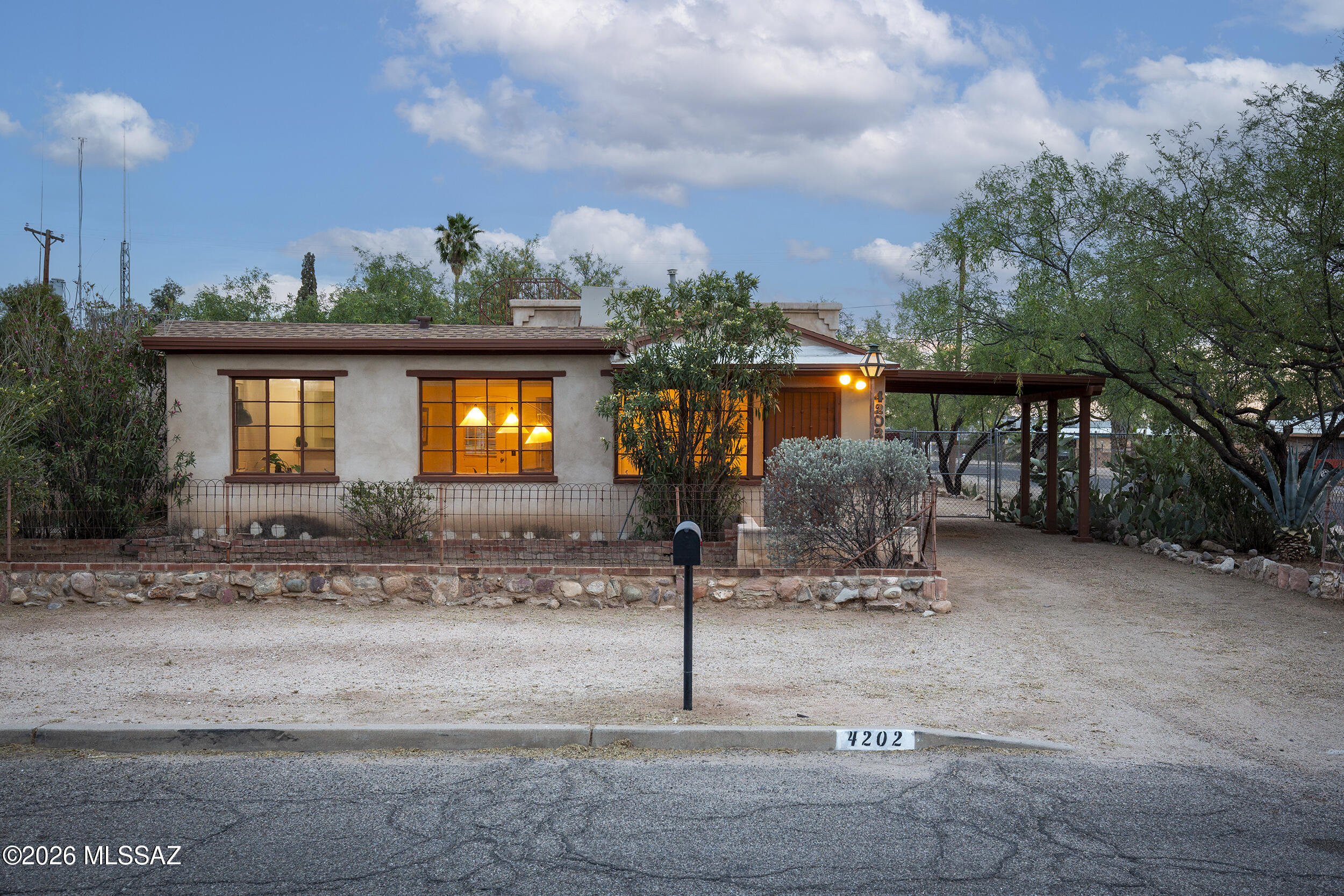 Located in the San Gabriel neighborhood, this charming 1949 bungalow blends original character with a well-balanced floor plan and thoughtful addition. Wood-beamed ceilings and polished concrete floors anchor the main living spaces, with a defined living room that opens into a central dining area, creating a natural flow for everyday living.The kitchen sits just off the dining room, with direct access to a dedicated laundry/utility room and rear patio, allowing for easy indoor-outdoor connection. The original bedroom and hall bath are set toward the front of the home, while the primary suite addition is privately positioned at the rear. Generous in scale, the primary offers high ceilings, a walk-in closet, and an en-suite bath.An enclosed entry adds a sense of arrival, while the la