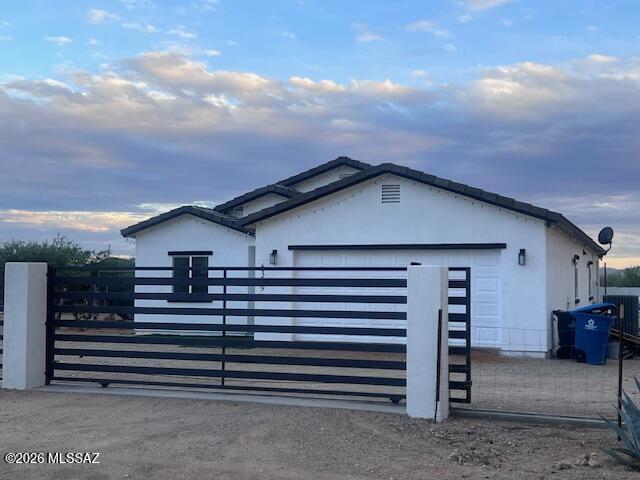 Modern Ranch Home on Acreage.Move-in ready, site-built 4-bed/2bath 1,826 SF home, on over an acre of propertyMain Features:Site-built 2022 Builder Home 4-bed/2-bath, 1826 SFGreatroom & Dining1.3 Acre usable fenced propertyCustom metal gate with remote2-car finished garage with openerHorse facilities, RV's, Hobbies OK.Model-style all ceramic tile, pallet of modern gray, white, black.Open kitchen with custom cabinets, stainless appliances.