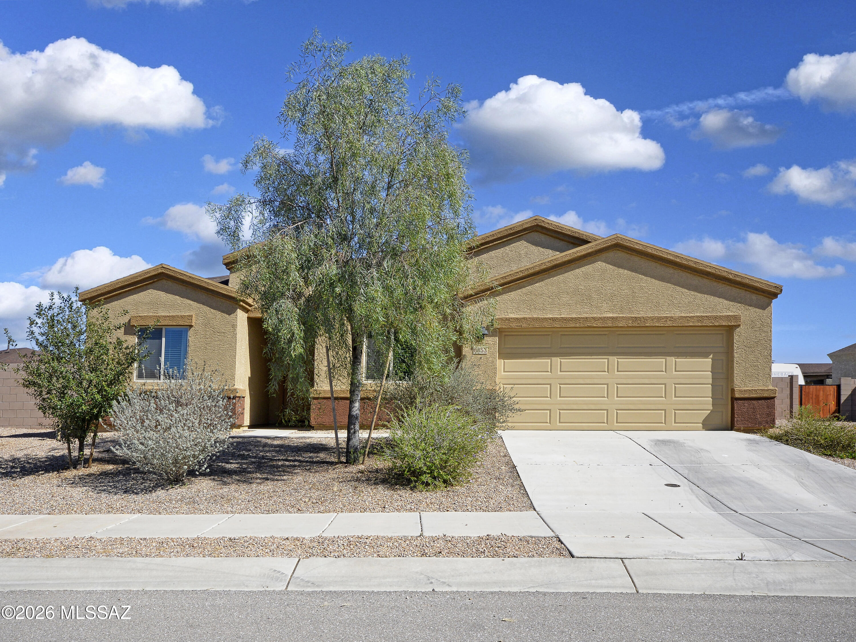 Perfect floorplan with 4 bedrooms 2 ba. single story, 2002 sf, and split bedroom plan. The open great room is light and bright and great for entertaining. The kitchen is perfect for all your cooking needs. The large granite breakfast bar is a big plus for extra cooking space. Lots of cabinets and granite counters. Stainless steel appliances with a gas range. The large walk in closet has plenty of room. The master bedrm is private with a walk in shower, double vanity w/granite counters and even has a large linen area w/shelves. The turf grass and large backyard is awaiting your extra touch for desert plantings, shrubs, garden or whatever! Located in the beautiful SW area of Tucson, where the open desert and majestic mountains provide a more expansive feel, and is so appreciated