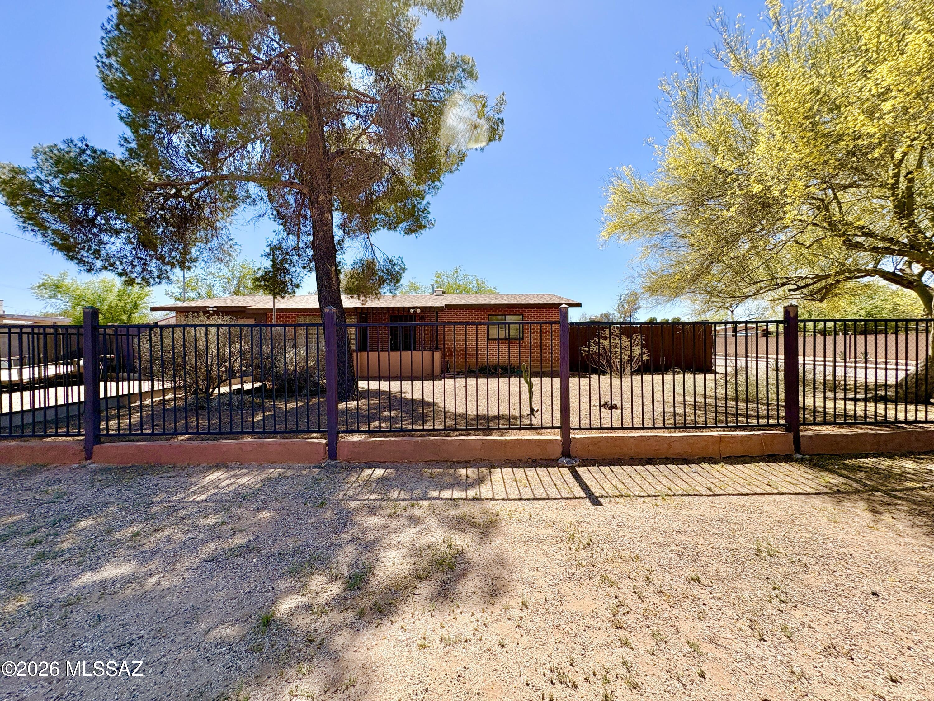 Absolutely stunning, unique, brick house settled on a rare 1/3 acre corner lot is ready for you! HUGE backyard, plenty of living space, storage space and more. Gorgeous slate flooring elevates the entire home. Kitchen is complete with hickory wood cabinetry, newer stainless steel appliances and breakfast bar. Stylish exposed red brick and access to back patio in the primary suite. Two storage rooms off of porch, one utilized as a laundry room, the other includes extra shelving! Tastefully remodeled bathrooms. Two guest bedrooms are spacious, one has it's own access to a fenced off piece of the back yard! The possibilities are ENDLESS for the huge lot. Build a workshop, garden, pool, you name it! The choice is yours with NO HOA to contend with!