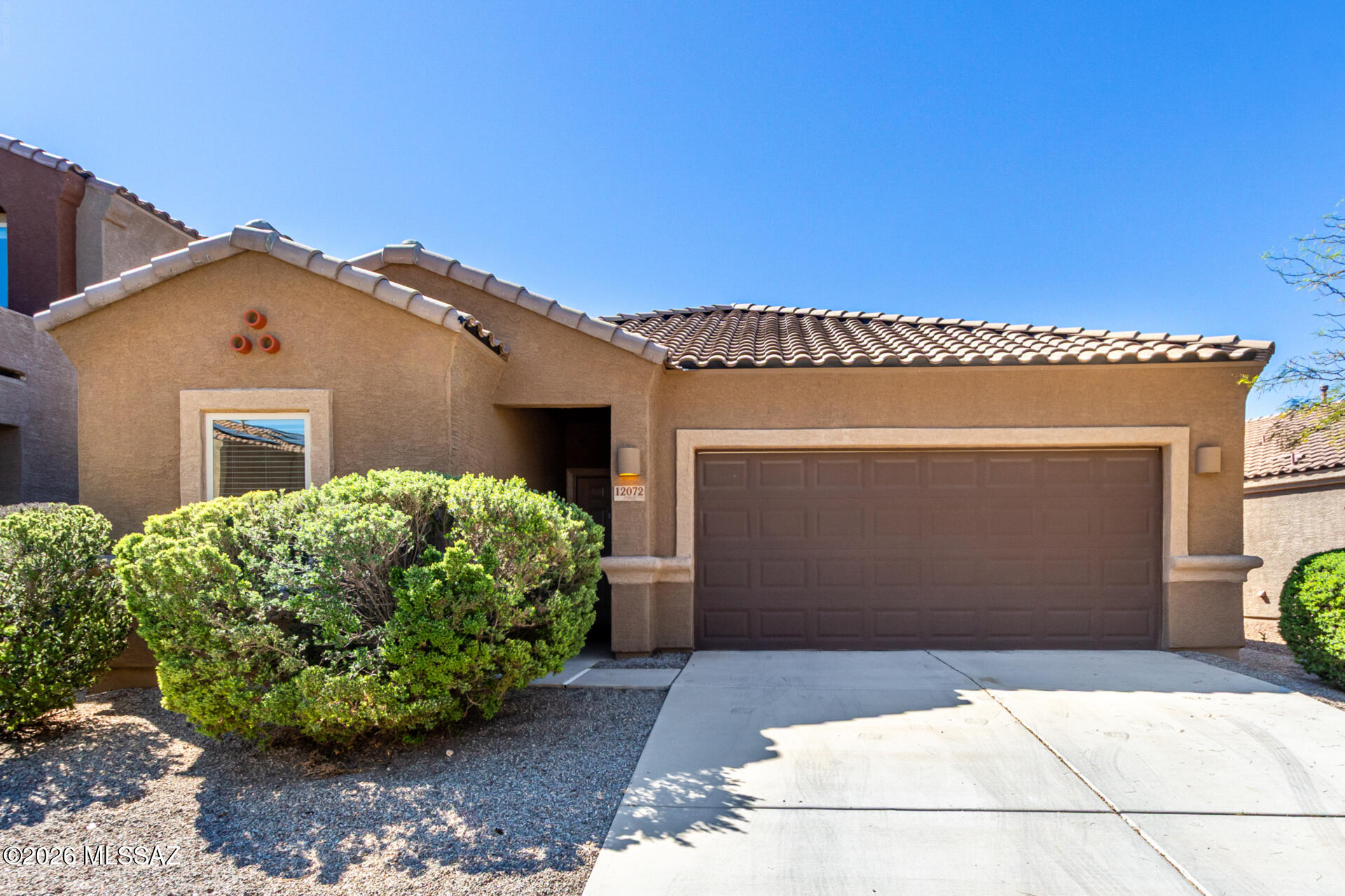 Welcome to this beautifully maintained single-story home in the desirable Vista Del Lago Norte community of Vail, Arizona, located within the highly sought-after Vail Unified School District. This home features three bedrooms and two full bathrooms with a smart split-bedroom layout, offering both privacy and functionality. The spacious 1,500 sq ft floor plan includes nine-foot ceilings and tile flooring throughout the main living areas. The open-concept great room flows seamlessly into the kitchen, which is equipped with granite countertops, a large island with seating, stainless-steel appliances, and ample cabinet storage. The primary suite offers a private bathroom with dual sinks, a walk-in shower, and generous closet space.