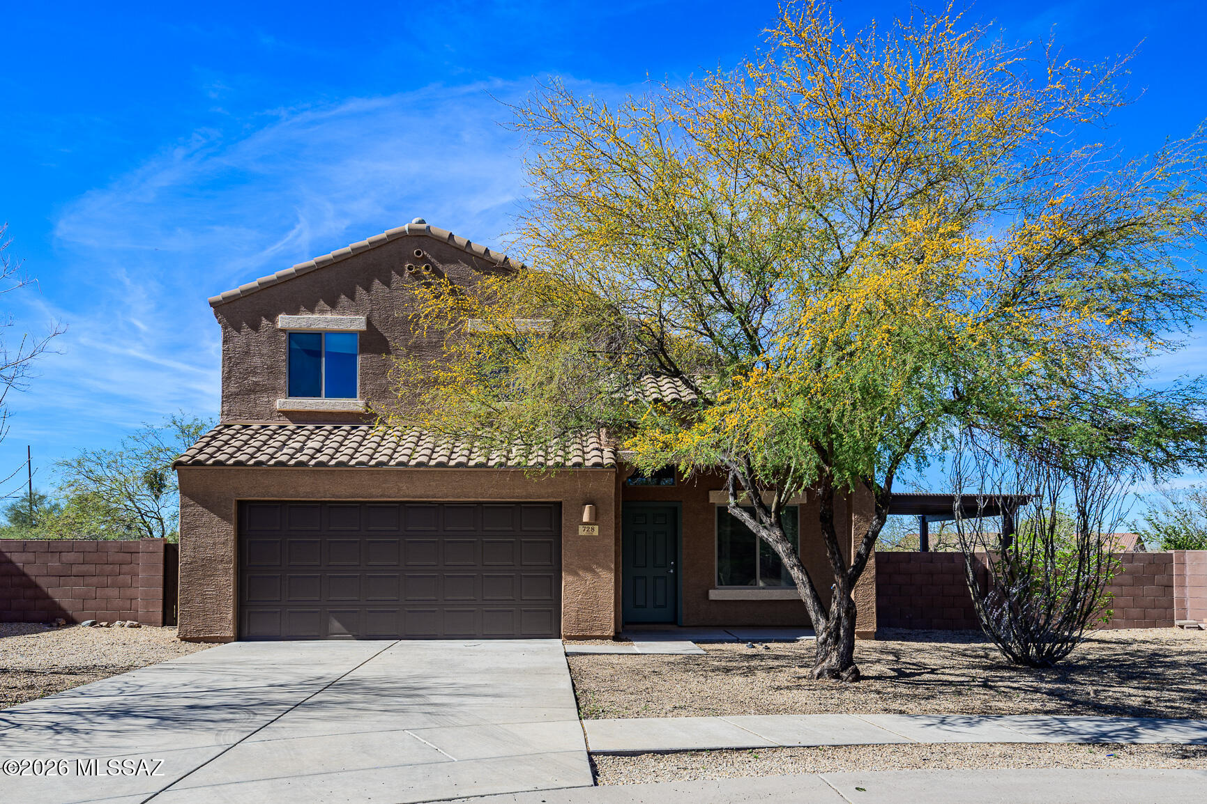 Fantastic two-story 3-bedroom, 2.5-bath home loaded w/upgrades & located in the highly sought-after Vail School District. This beautiful home offers a spacious, light-filled floor plan w/a neutral color palette throughout. The main level features formal living & dining rooms, guest bath, & updated kitchen complete w/granite countertops, all appliances, oversized pantry, & breakfast bar. Upstairs you'll find all three bedrooms along w/a private loft--perfect for a home office, media room, or flex space. The low-maintenance backyard backs to natural desert for added privacy & showcases wrap-around pavers & a ramada-covered patio, ideal for entertaining. Additional highlights include a cul-de-sac lot, fresh exterior paint, tile flooring throughout with bamboo at entry.